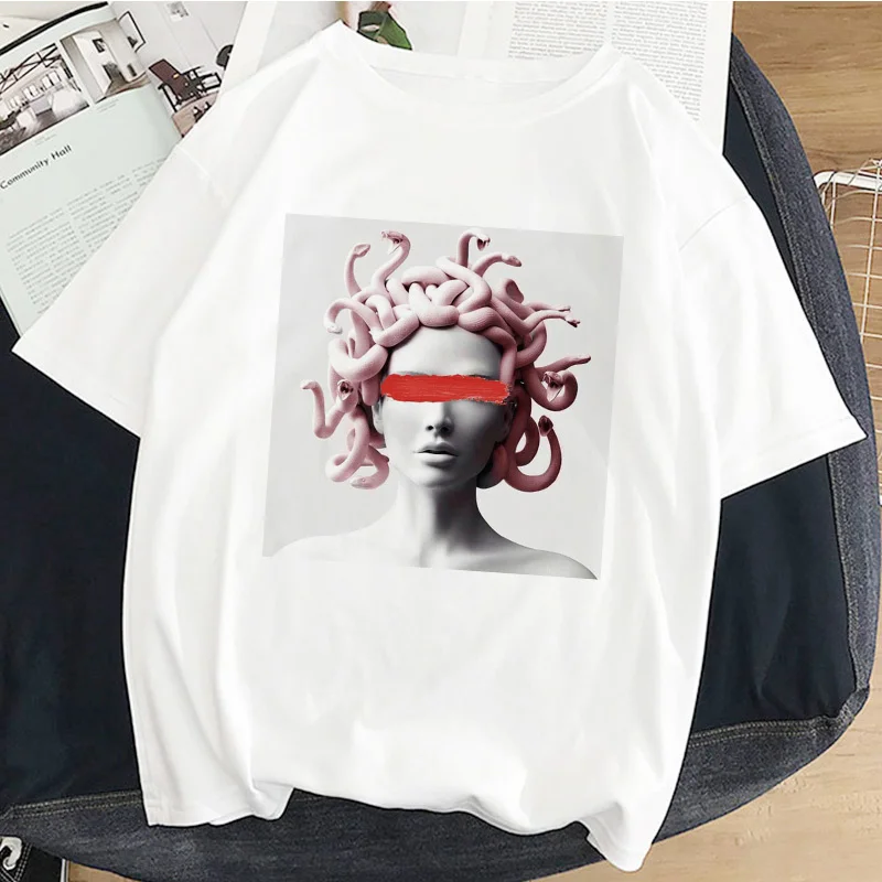 Футболка женская с принтом змеиной головы, повседневный белый топ с принтом монстра медузы, винтажная тенниска в стиле Харадзюку, лето
