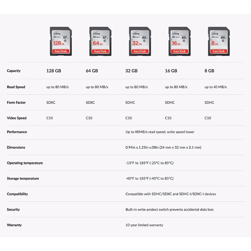 SanDisk Ultra SD карта 64 Гб SDXC SDHC SD 128 ГБ большая карта 32 Гб класс 10 Флэш-карта памяти 256 Гб 16 Гб CD карты 4K SDHC для камеры