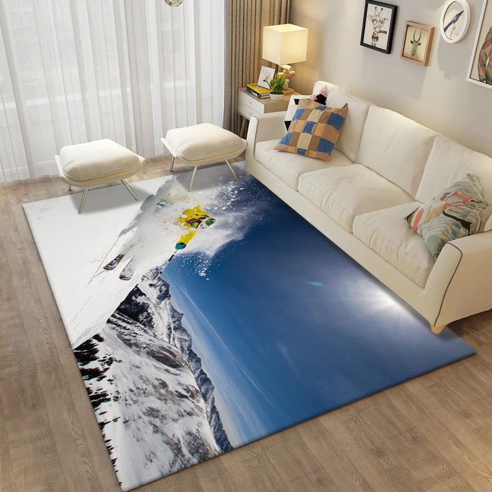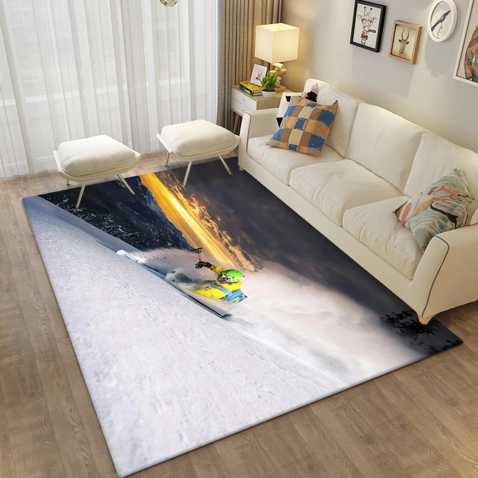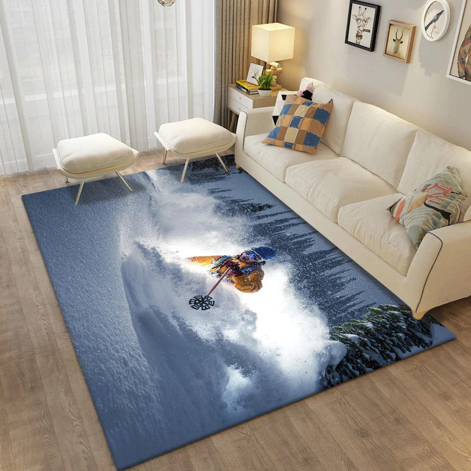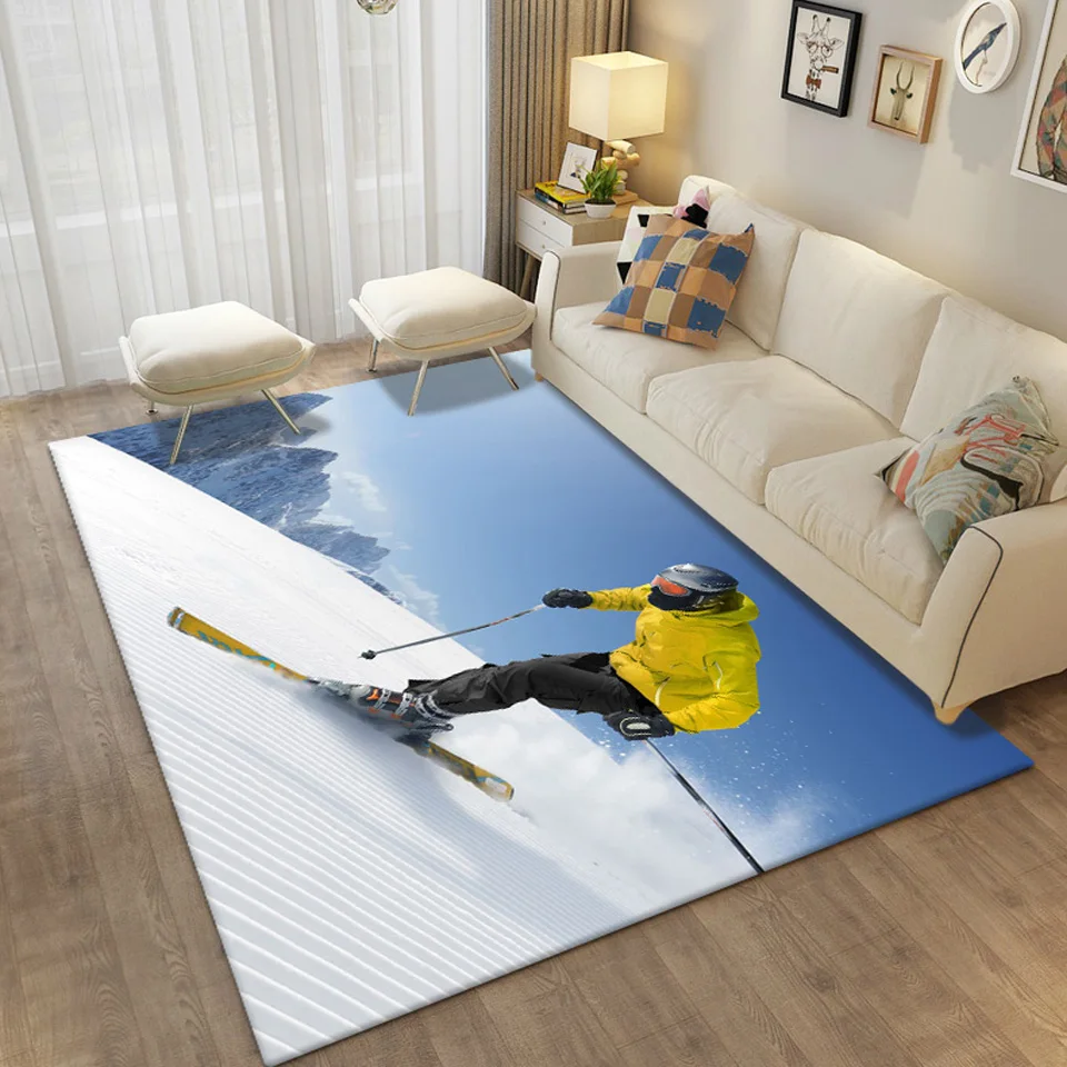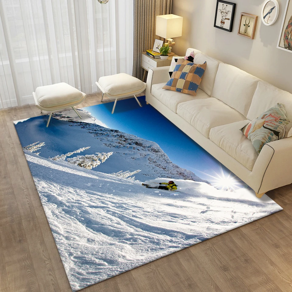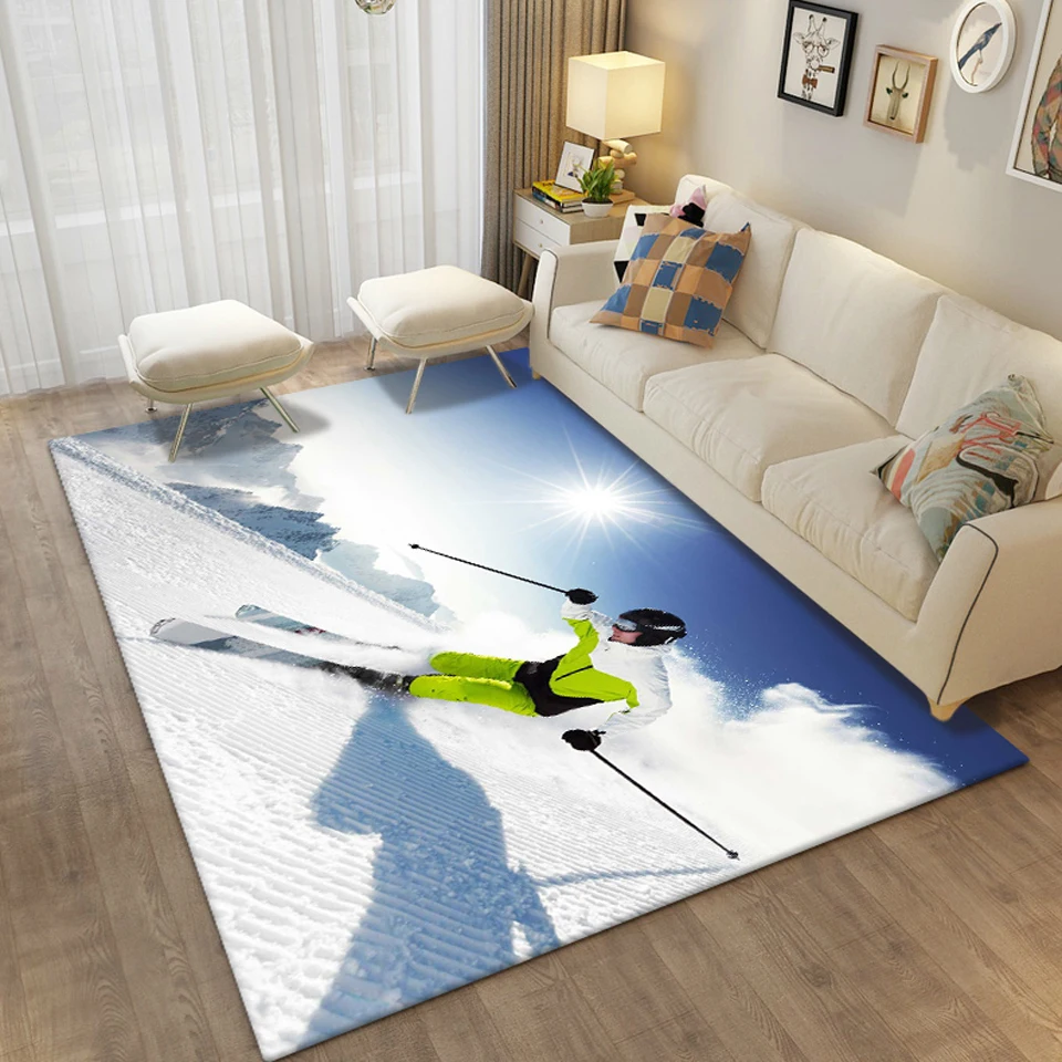 Name: Floor Rugs 3D Print Skiing Sport Flannel Soft Bedroom Carpet Snow Landscape Nordic Home Decoration Bedside Floor Room MatsMaterial: PolyesterApplication: Bedroom, Living room, Laundry room, Entry way, Apartment, Children's room,kids room.* In fact, you can use it wherever you think is good.Feature: beautiful color design, soft and comfortable, no fading, anti-slip.