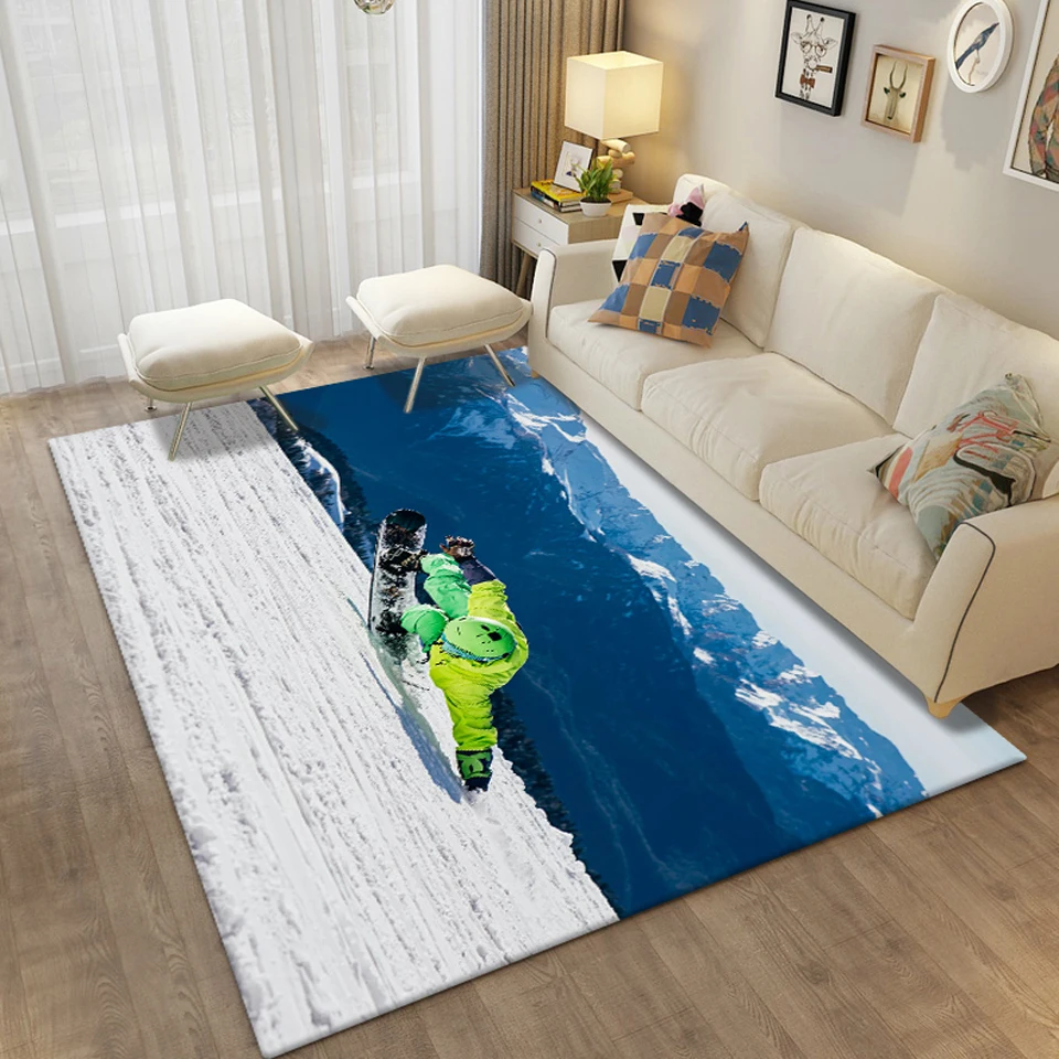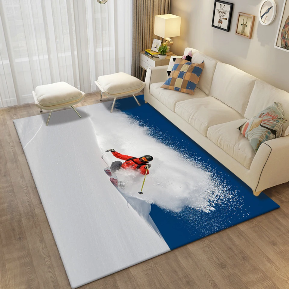 Напольные коврики с 3D-принтом, лыжный спорт, фланель, мягкий ковер для спальни, снежный пейзаж, скандинавское украшение дома, прикроватные напольные коврики