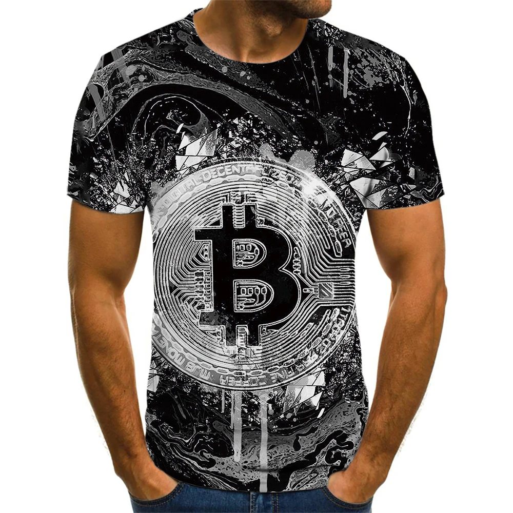 Модная Летняя мужская футболка с 3D принтом биткоина 2021, Мужская ...
