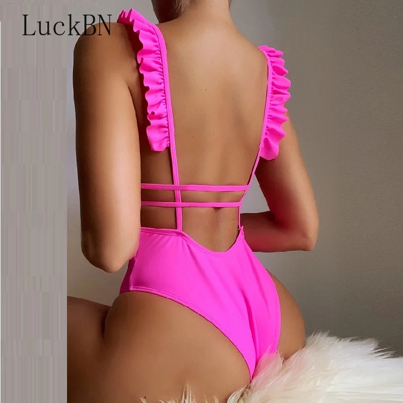Женский слитный купальник, с глубоким V-образным вырезом и открытой спиной, 2021