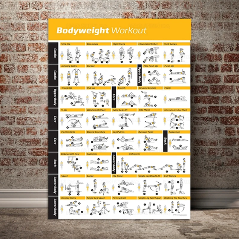 Постер для упражнений на тело, постер для упражнений на все тело, тренировки, персональный тренажер, фитнес-программа, Постер для домашнего тренажерного зала, холст с рисунком, картина hd