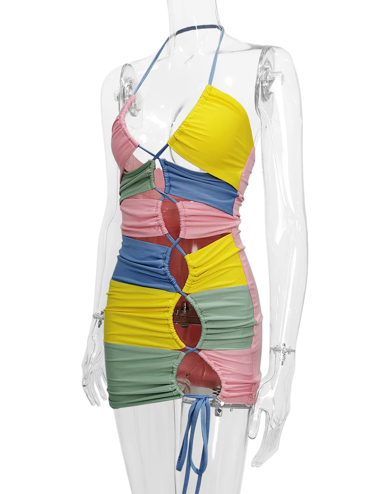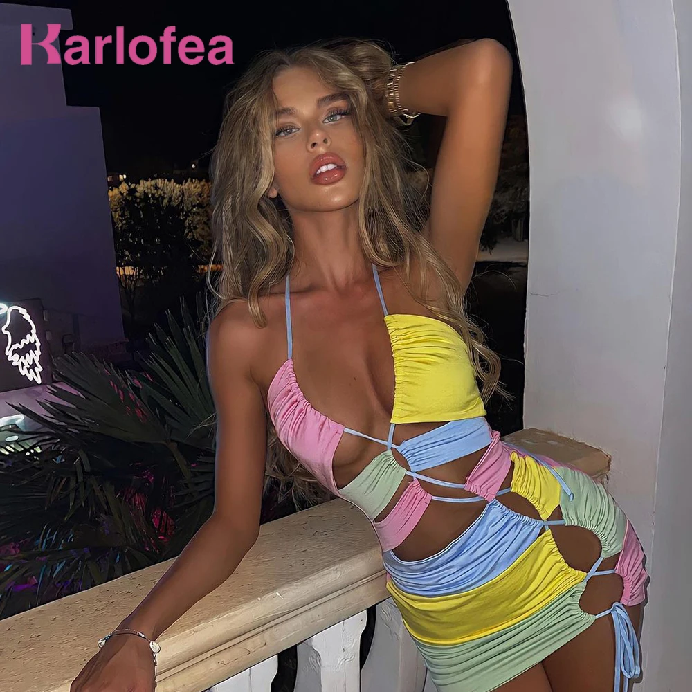 Karlofea Двухслойное лоскутное трикотажное облегающее мини-платье женская одежда знаменитостей для фестиваля и вечеринки пикантные наряды для ночного клуба