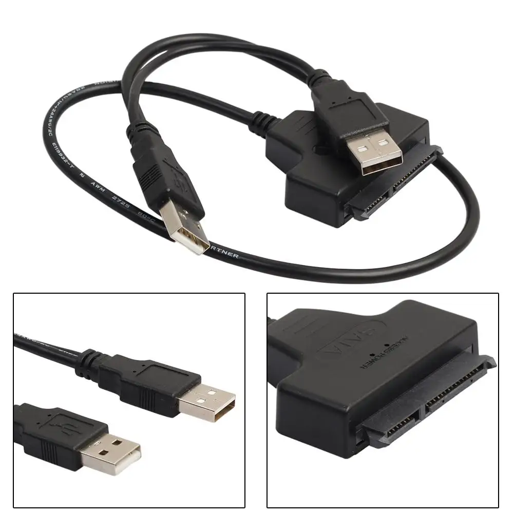Переходник для внешних жестких дисков с USB 2,0 на 22 Pin SATA, Кабель-адаптер с дополнительным кабелем питания USB для 2,5 дюймового SATA ноутбука HDD SSD