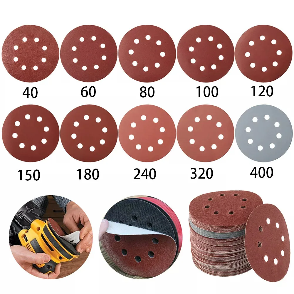 100 шт. 125 мм дисковая наждачная бумага, круглые восемь отверстий,...