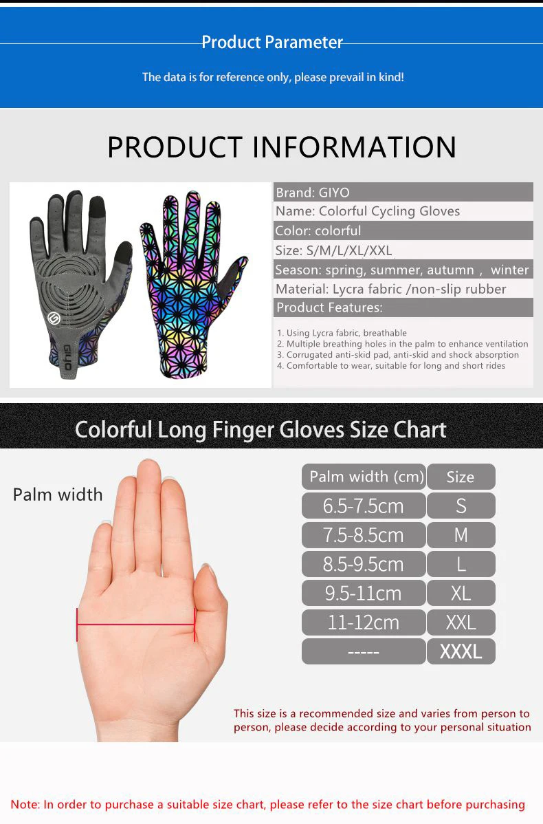 Велосипедные перчатки Giyo, светящиеся перчатки на весь палец, ослепляющие мотоциклетные длинные перчатки, силиконовые перчатки на ладони для мужчин, уличные противоскользящие рукавицы для горного велосипеда