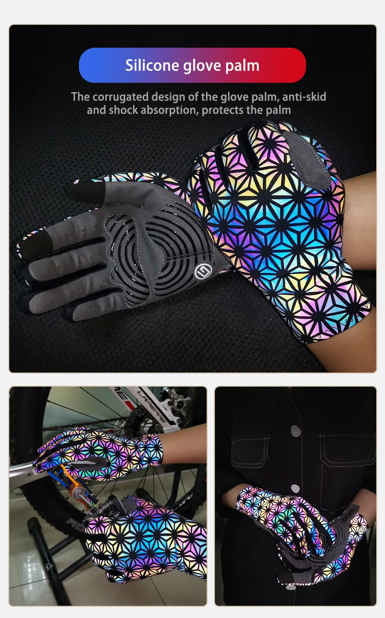 *** Он имеет отражающую функцию под светильник ночью, и цветные, отражающие перчатки делают его более безопасным для езды ночью
