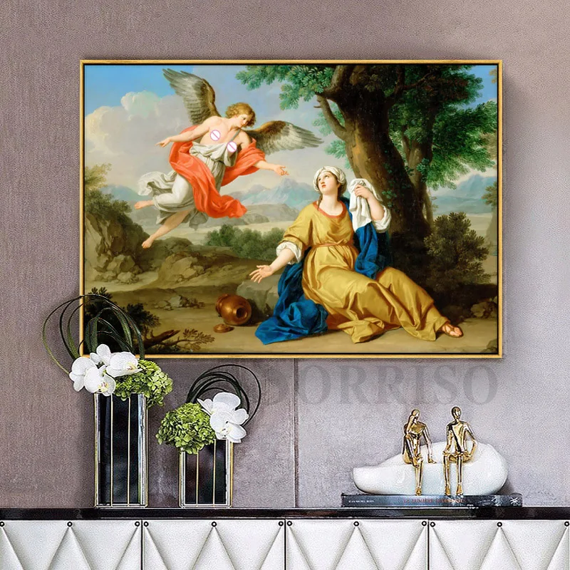 Европейский ретро богиня, ангел Нотр-Дам Холст Картина маслом стены Искусство коридора картины для гостиной постеры
