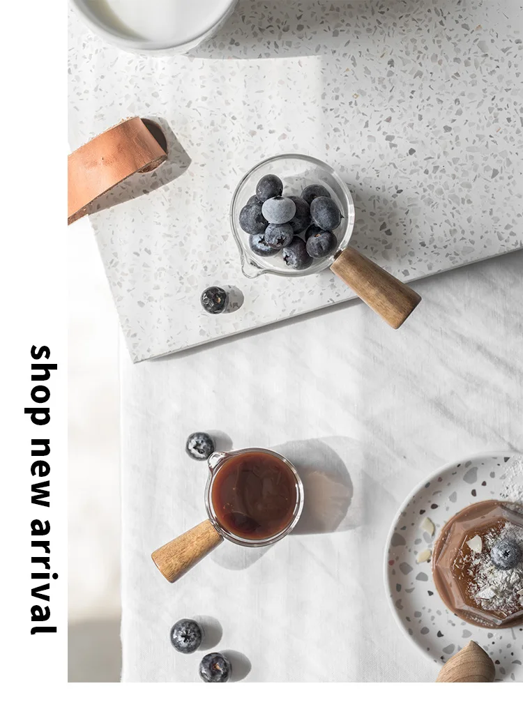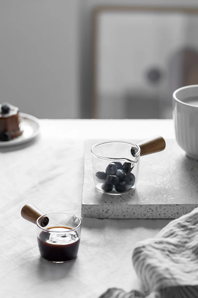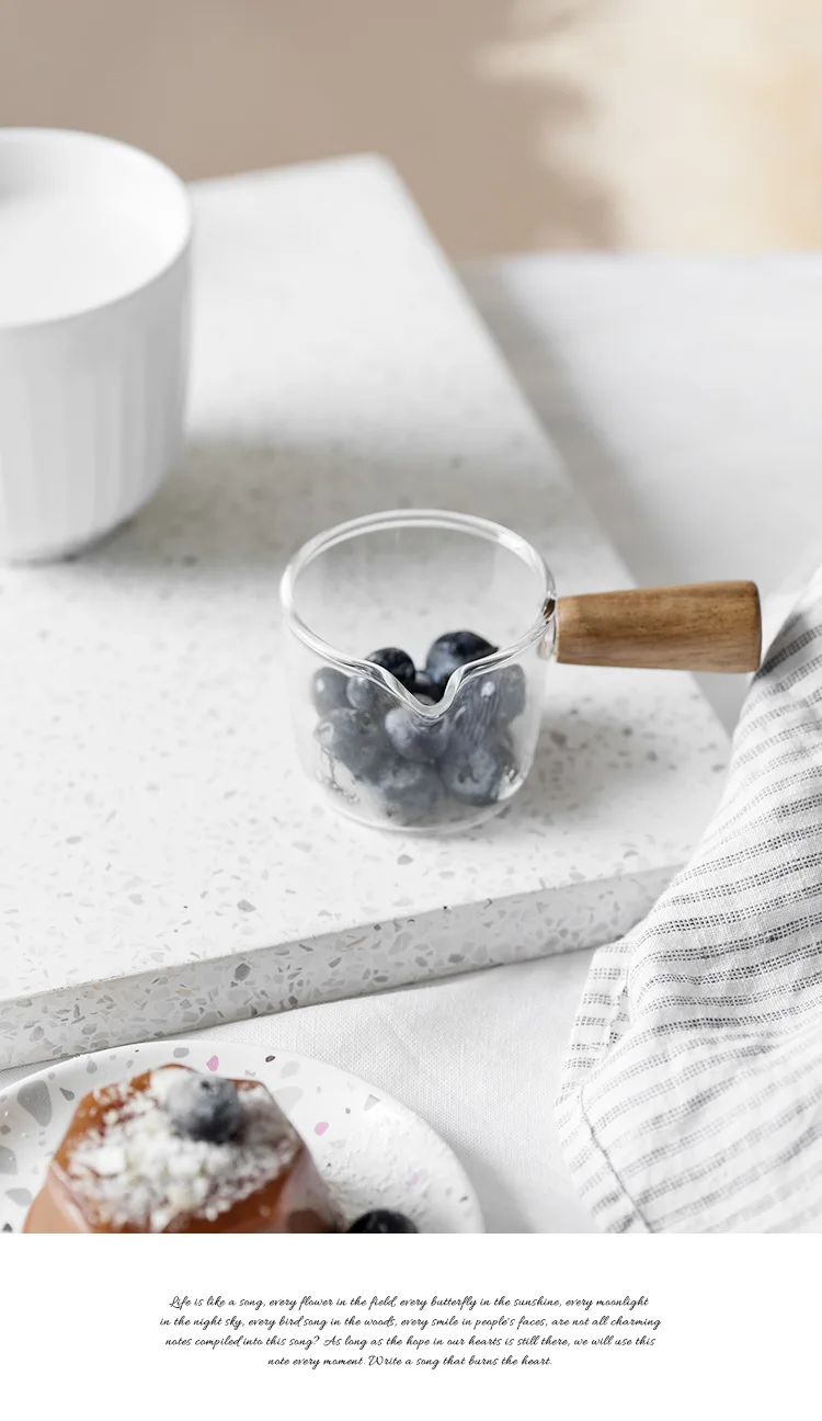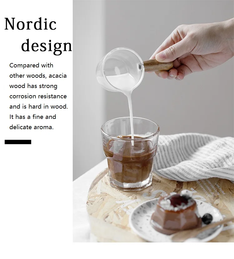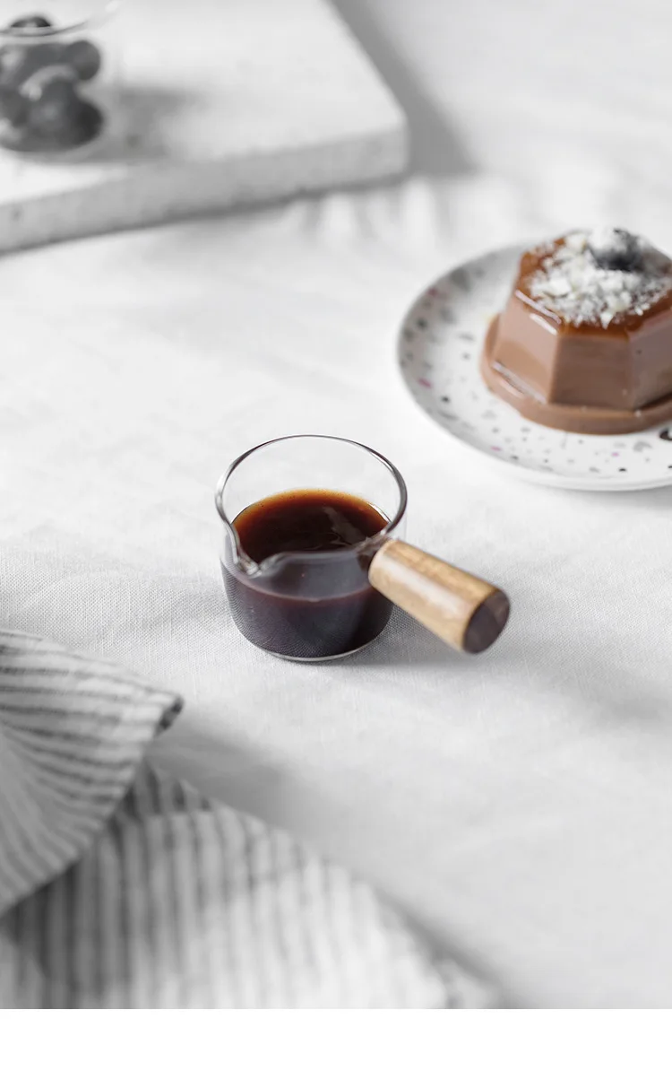 Стеклянная чашка для молока, 50100 мл, мини-кувшин с деревянной руч...