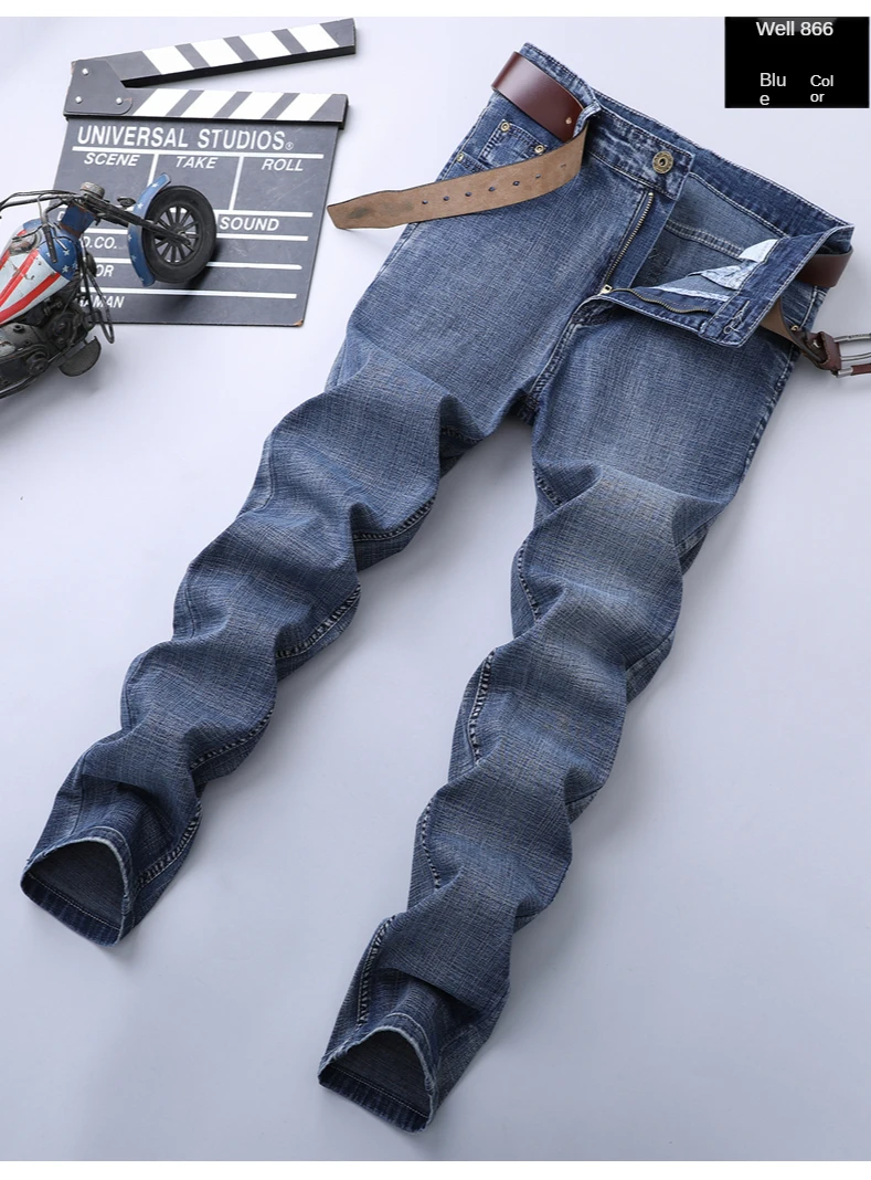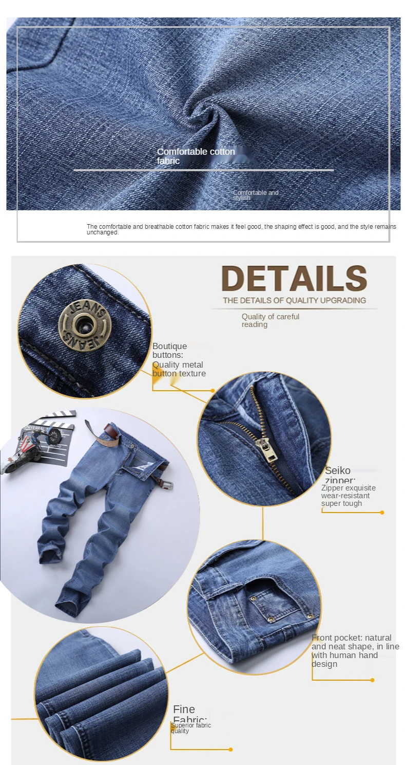 Мужские классические джинсы, эластичные Стрейчевые тонкие джинсы 7 ...