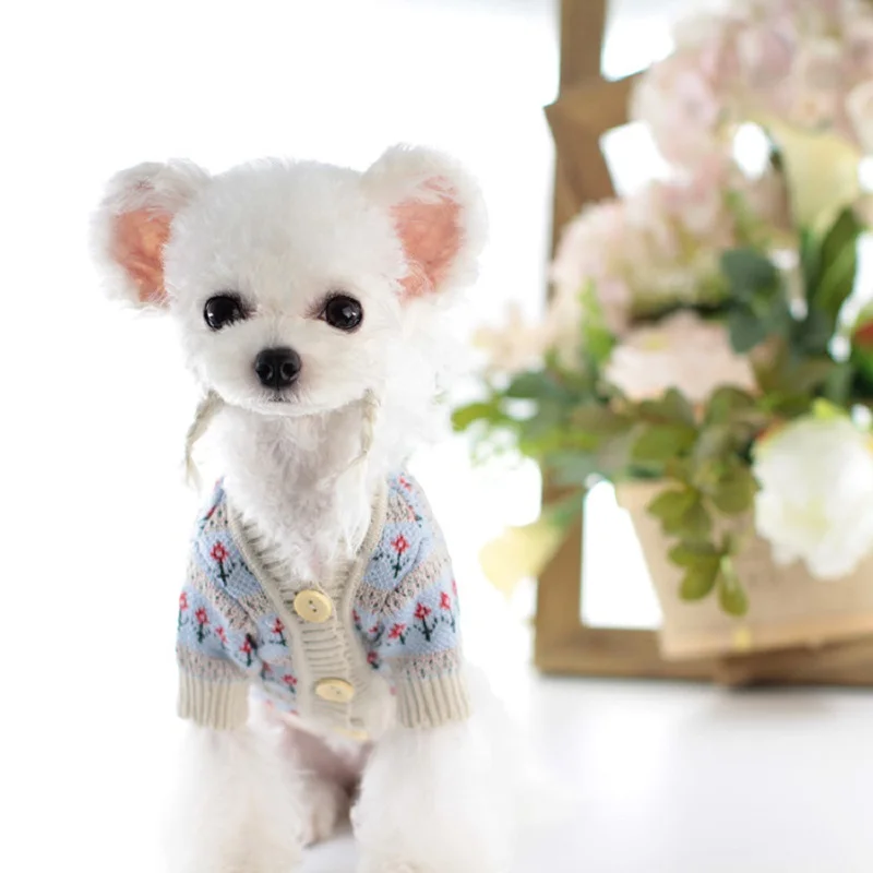 Осенняя одежда для собак, свитер с маленькими цветами для собак, ка...