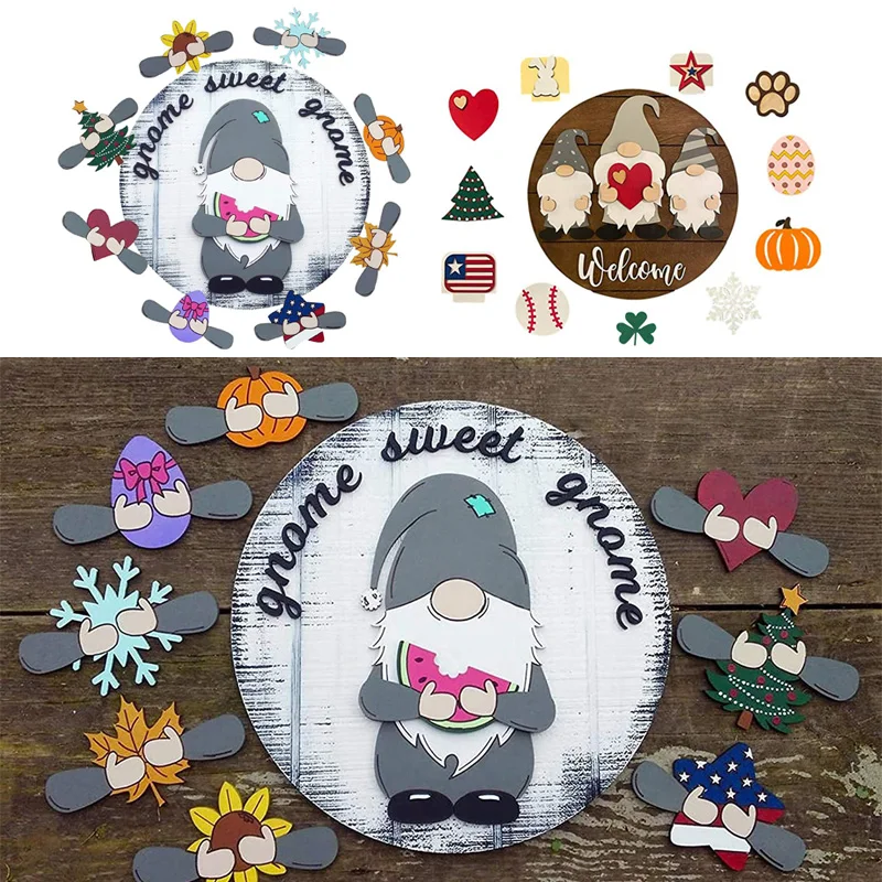 Дверная тарелка украшение дома DIY Gnome дверная вешалка сезонная знак приветствия со сменными выходными частями