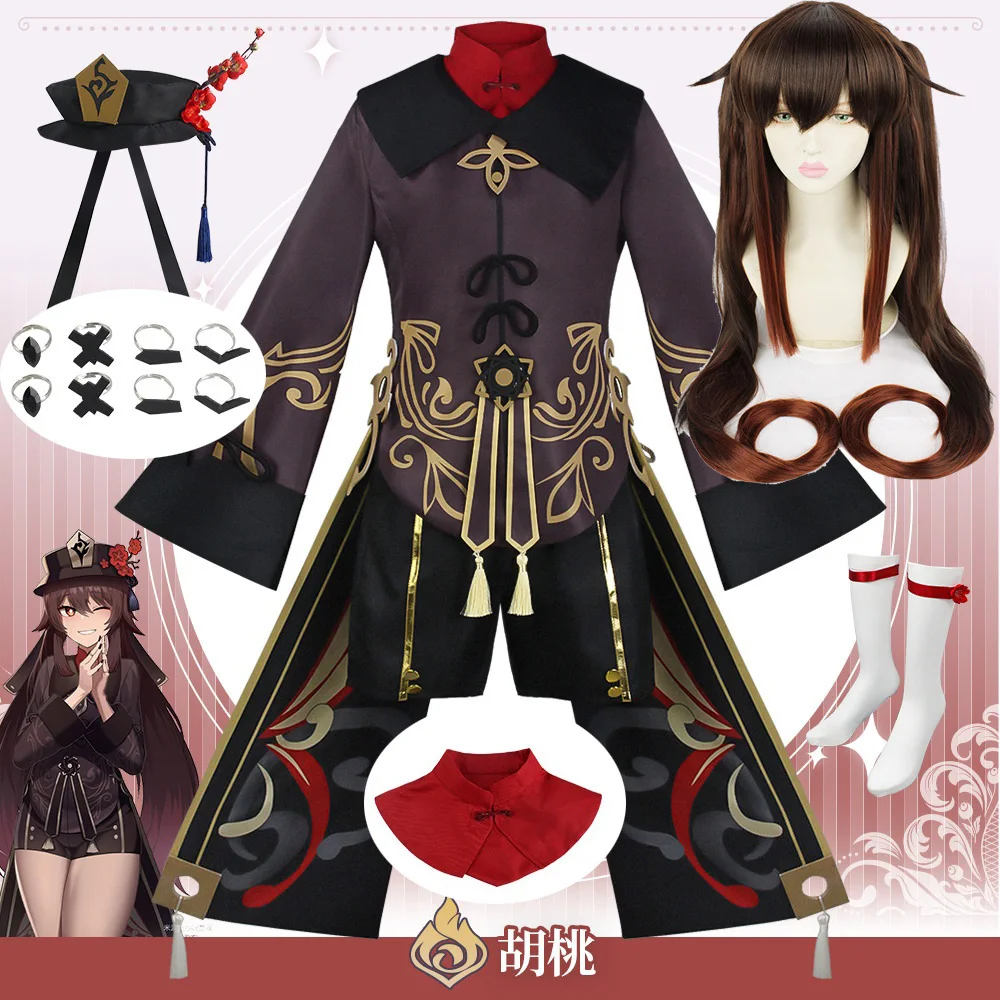 Костюм Genshin Impact Hutao для косплея, униформа Ху Тао в китайском стиле, косплей, аниме, игра на Хэллоуин, костюмы для женщин парик для взрослых