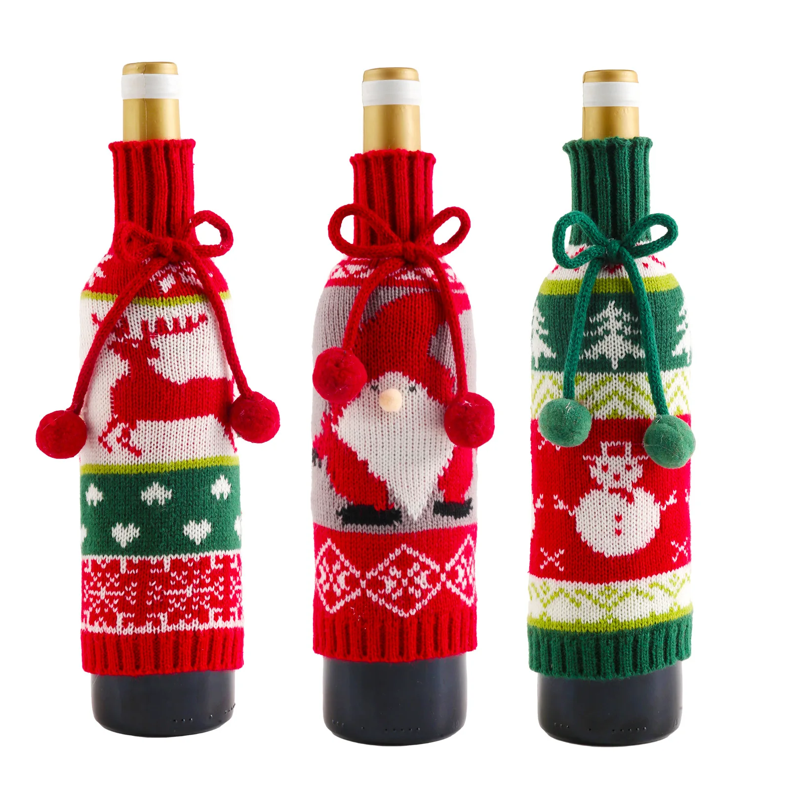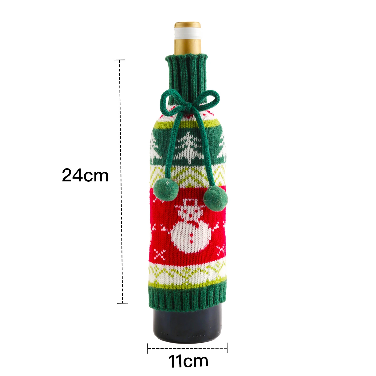 Вязаные рождественские крышки для винных бутылок, праздничный чехол...