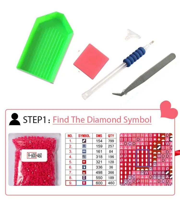 Kit Includes:a canvas, enough rhinestones, a set of tools