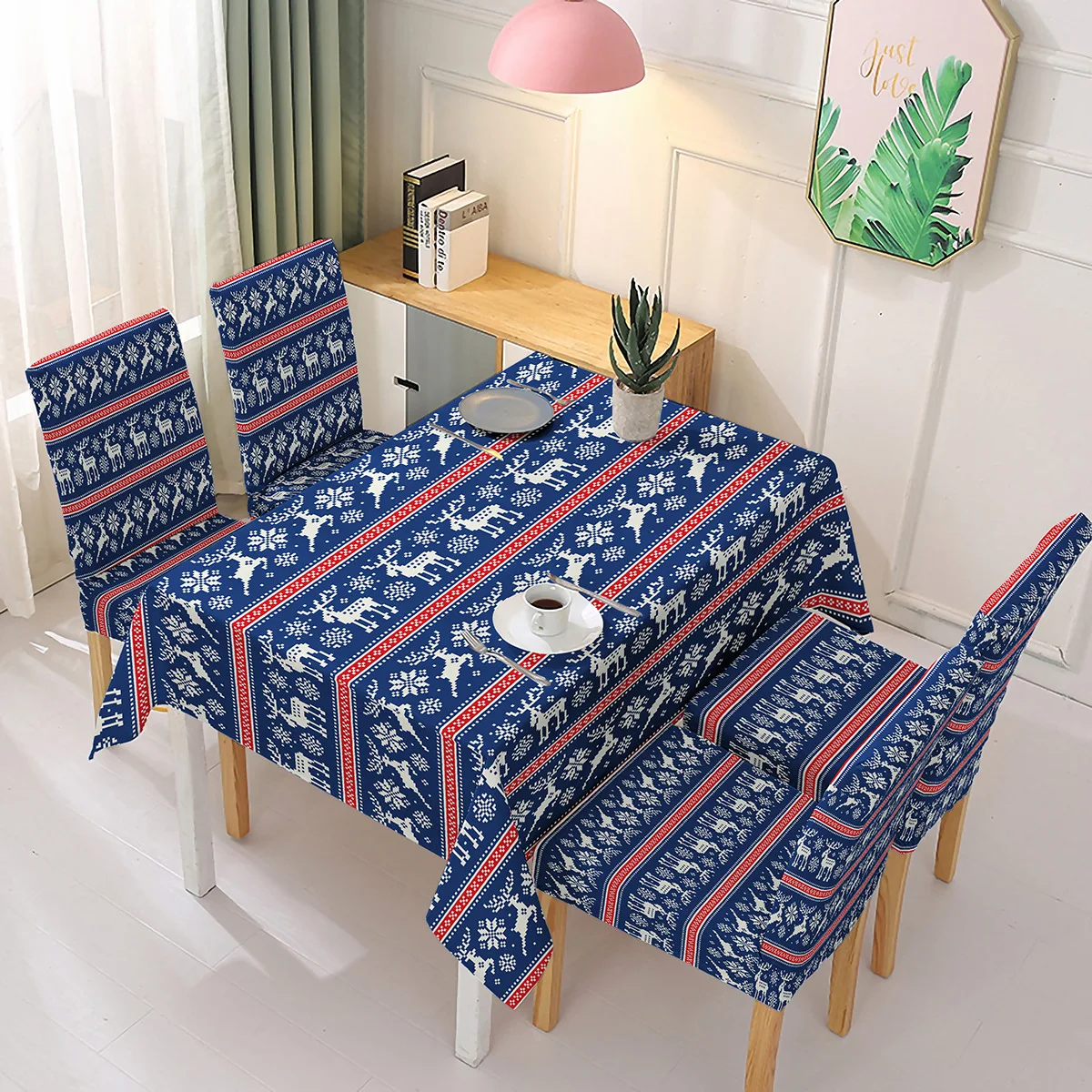 Рождественская Декоративная скатерть и искусственная кожа, цельное покрытие для стула, скатерть с принтом, чехол для стола, свадебное украшение