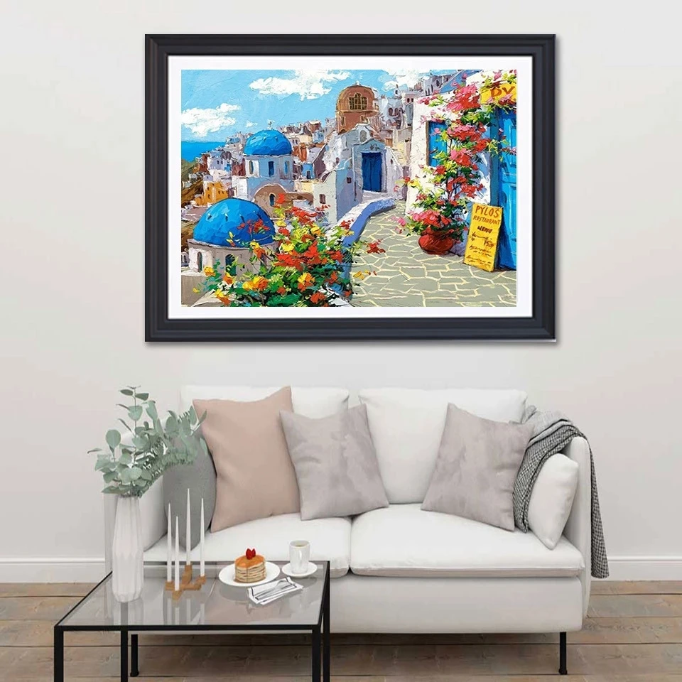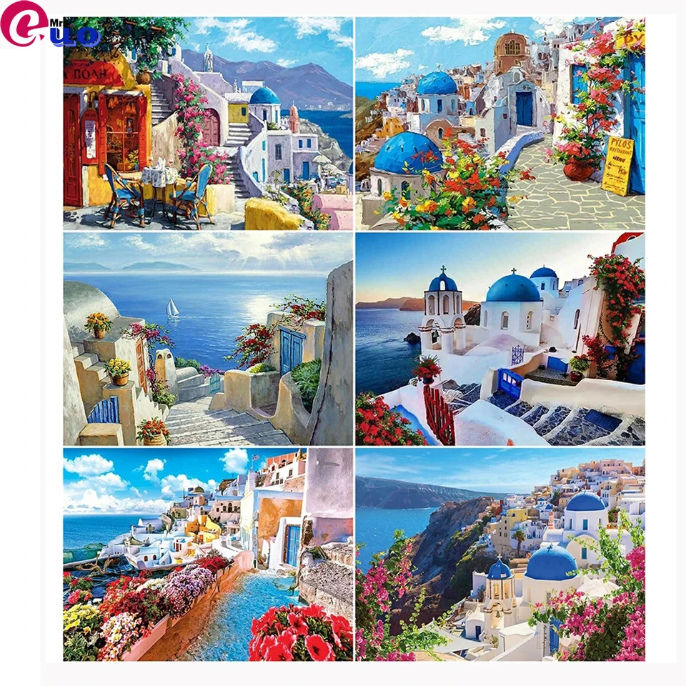 Алмазная мозаика 5D "сделай сам", с изображением греческого острова Санторини, пейзажа, картины для вышивки, декор для гостиной, наборы для алмазной живописи