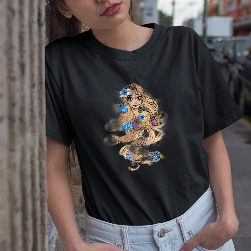 Disney Dropship женские футболки Рапунцель принцесса мультфильм узор летние новые товары цветные футболки женские Harajuku удобные
