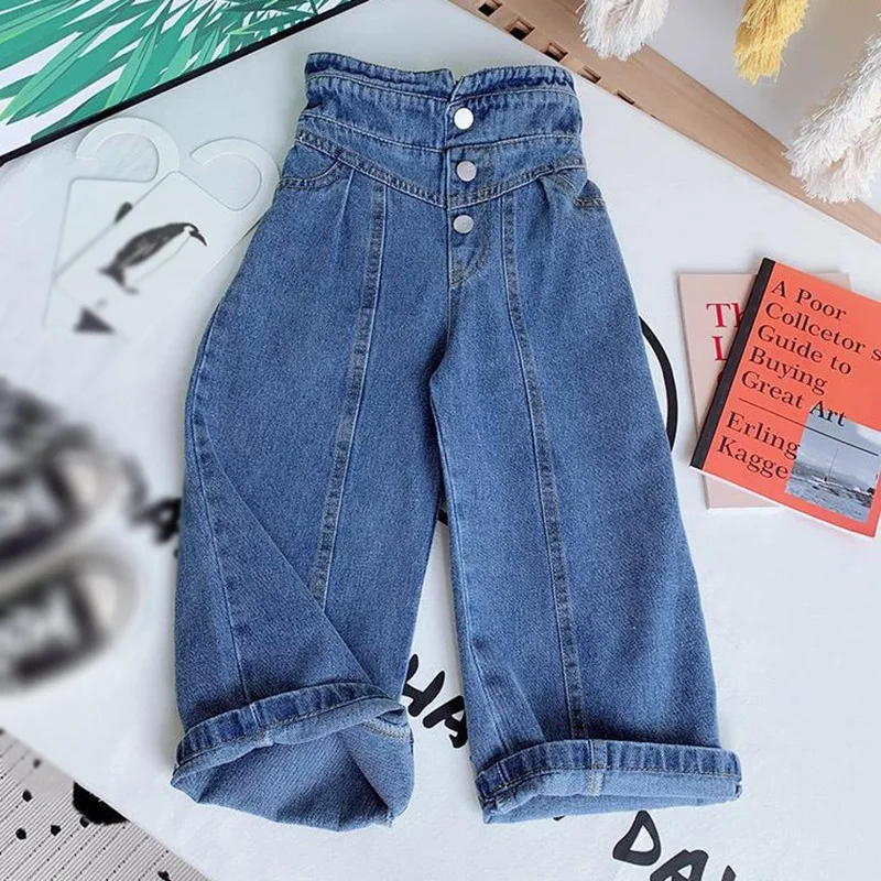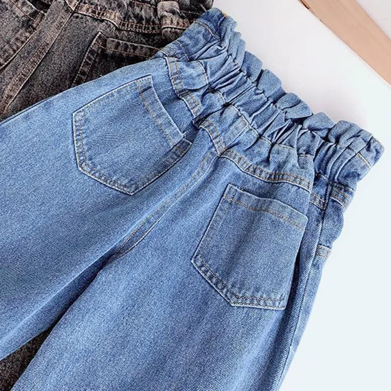 Джинсы для девочек с широкими штанинами на весну-осень, детские свободные прямые мягкие джинсовые брюки, детские джинсы с высокой талией для малышей