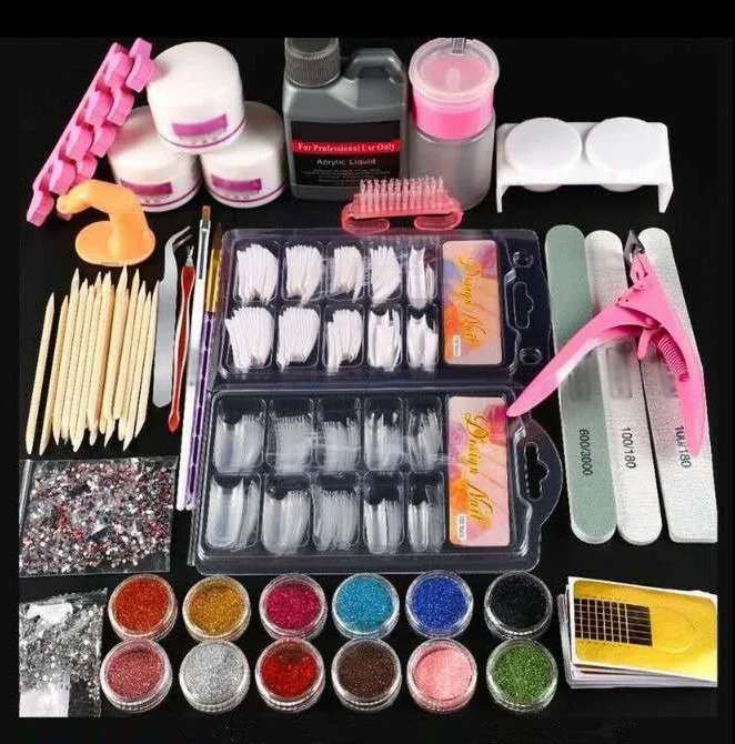 3 кристаллического порошка (прозрачный белый розовый) 1x120 мл кристальная жидкость 1x шлифовальная машина 12 x блестящий порошок разных цветов 1 x Розовые односторонние ножницы 1 x Мини-пресс-бутылка 1 x белая чашка с двумя отверстиями 20 x самоклеющаяся бумажная подставка 20 x буковая палочка 1 x маленькая щетка для очистки ногтей 2 x разделитель пальцев 1 x ложный палец для ногтей 1000 x Серебряный бриллиант 1000 x Алмазные Стразы различных цветов 1 x Круглый пилочка для ногтей 1 x Алмазная пилка 1 x Полировочная пилка 1 x вилка для мертвой кожи 100x10 Размер в коробке натуральный цвет французский накладные ногти 100x10 Размер в коробке прозрачные французские накладные ногти наконечник для ногтей 1 x Кисть для фототерапии 1 x кисточка с кристаллами (случайный) 1 пинцет из нержавеющей стали