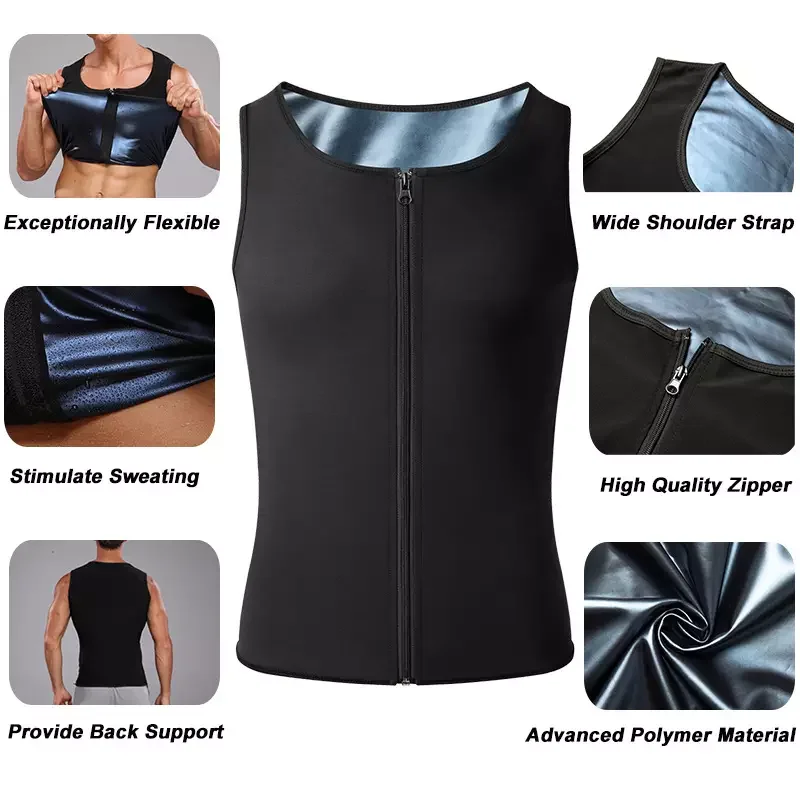 Мужской полимерный спортивный жилет-сауна, тренировочный костюм-сауна, тренировочная майка, мужской корсет на молнии для фитнеса пояс для похудения утягивающее белье похудение сжигание жира компрессионное белье карсет