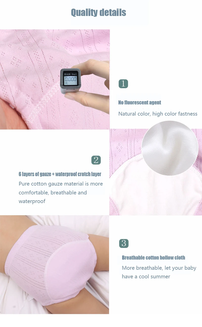 Моющиеся тренировочные подгузники, как следует из названия, имеют функцию «Подгузники + брюки». Это переход для детей, чтобы избавиться от подгузников и подгузников, так же, как внутренняя структура дизайна подгузников, плюс Водонепроницаемый внутренний слой. После того, как ребенок промокает, на него не повлияют долгое время после использования. Другая одежда и штаны, слегка влажные ощущения могут напоминать ребенку ходить в туалет; дизайн без застежек до Штаны и подтягивание Штаны позволяют легко для ребенка, чтобы надевать и снимать подгузники.