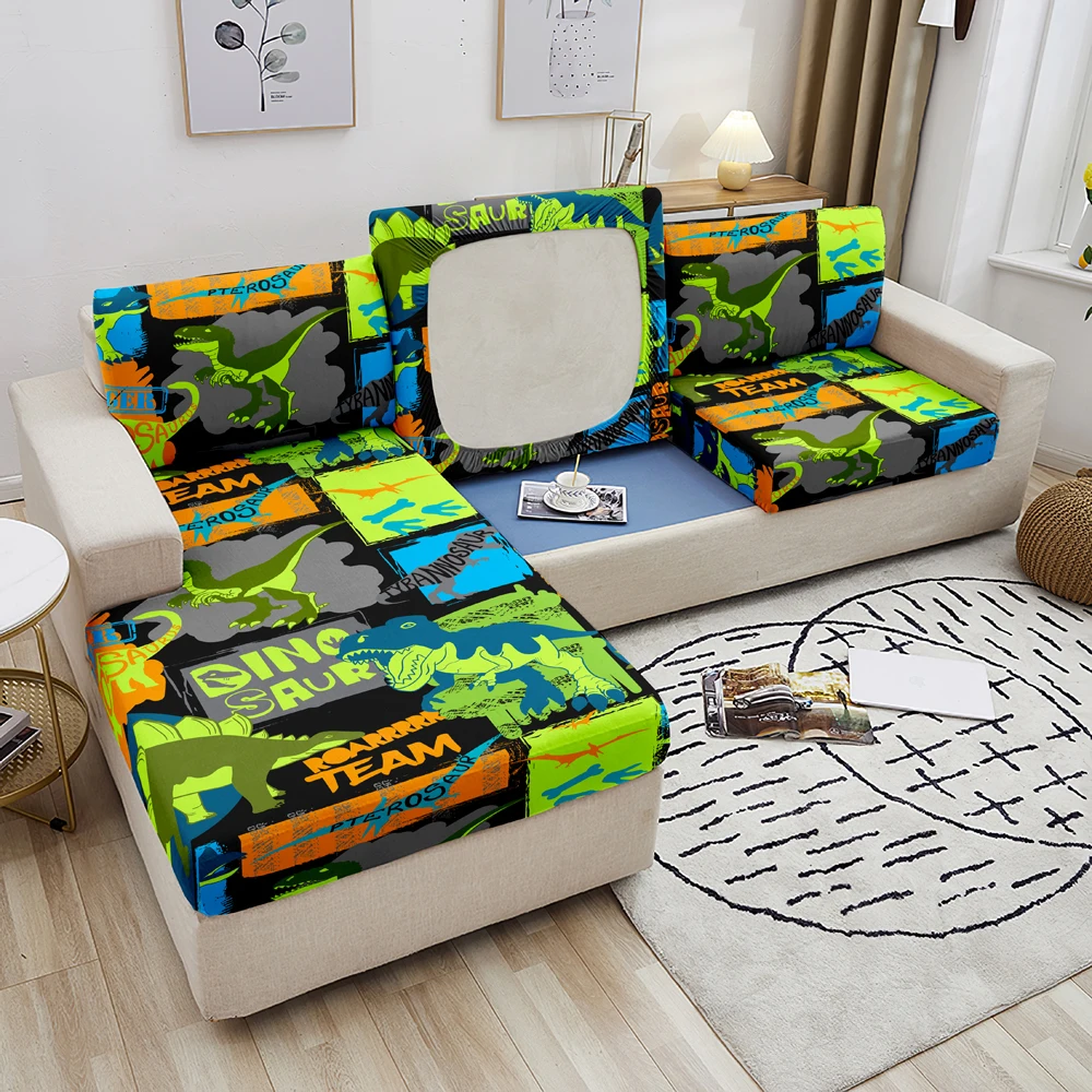 Эластичный чехол для диванной подушки, с изображением динозавра