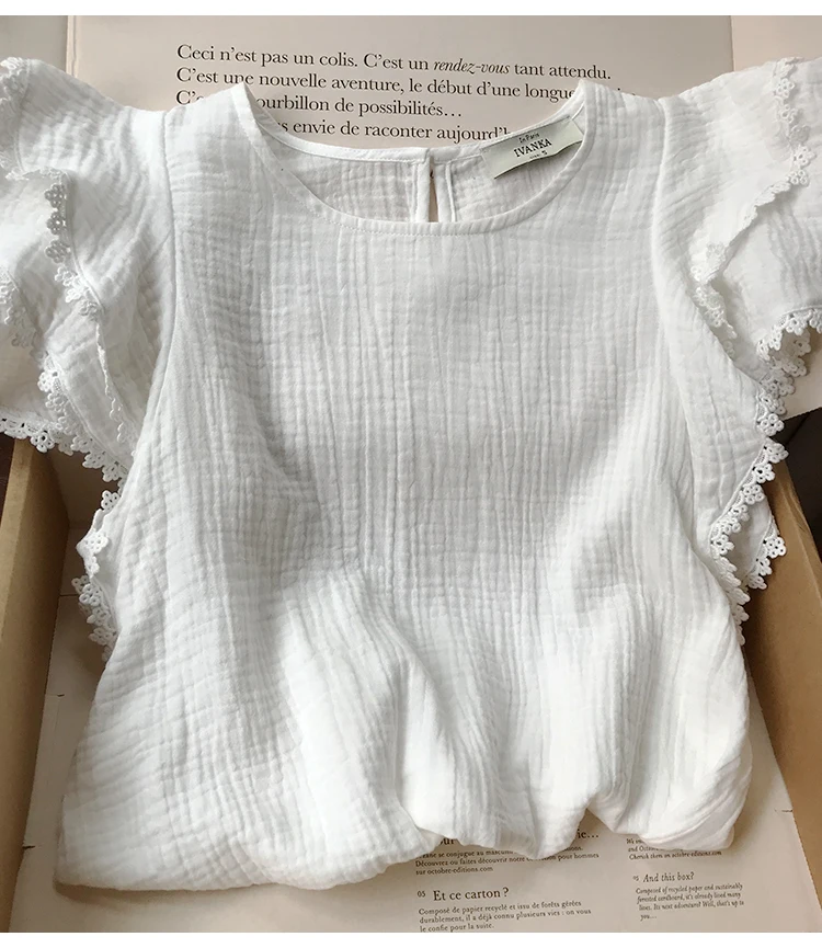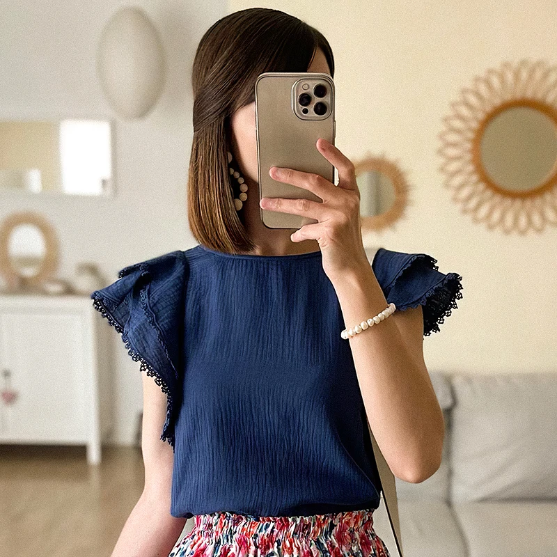 Блузка женская летняя с круглым вырезом, пышными рукавами и пуговицами сзади