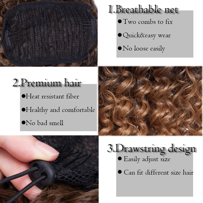 Бренд: MY-LADYМатериал: 100% Термостойкое волокноТип волос: хвост на шнуркеДлина: 8 дюймовВес нетто: 130 гТип: 100% Премиум синтетические кудрявые волосы