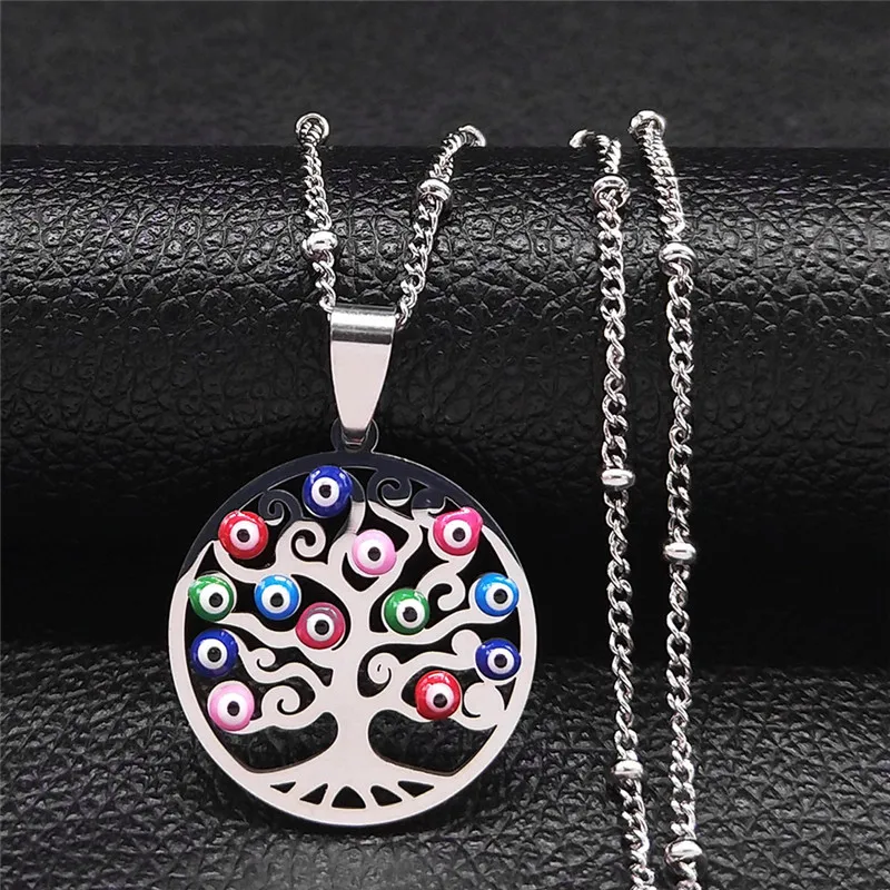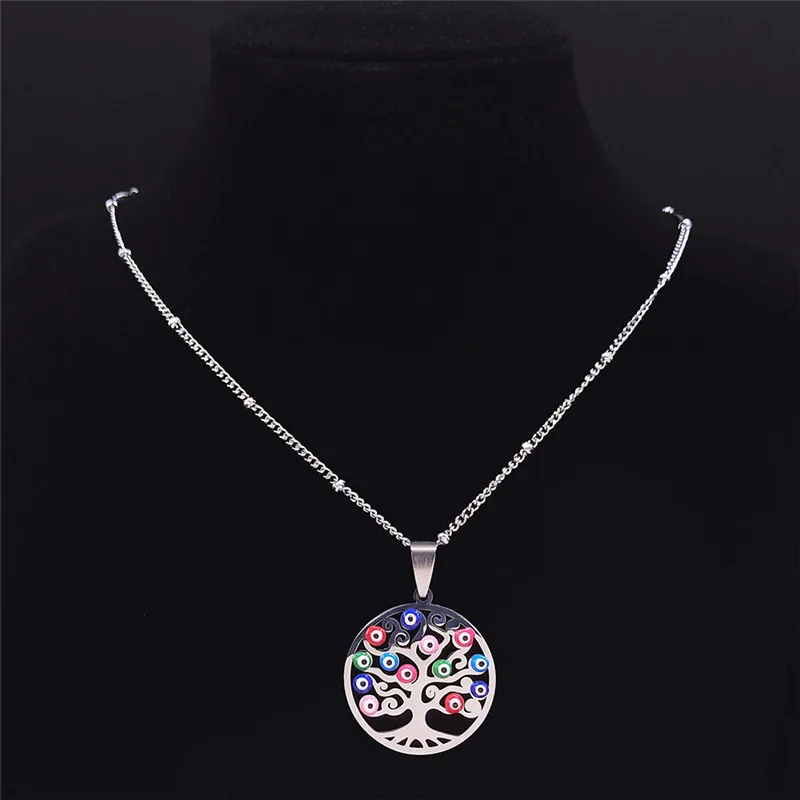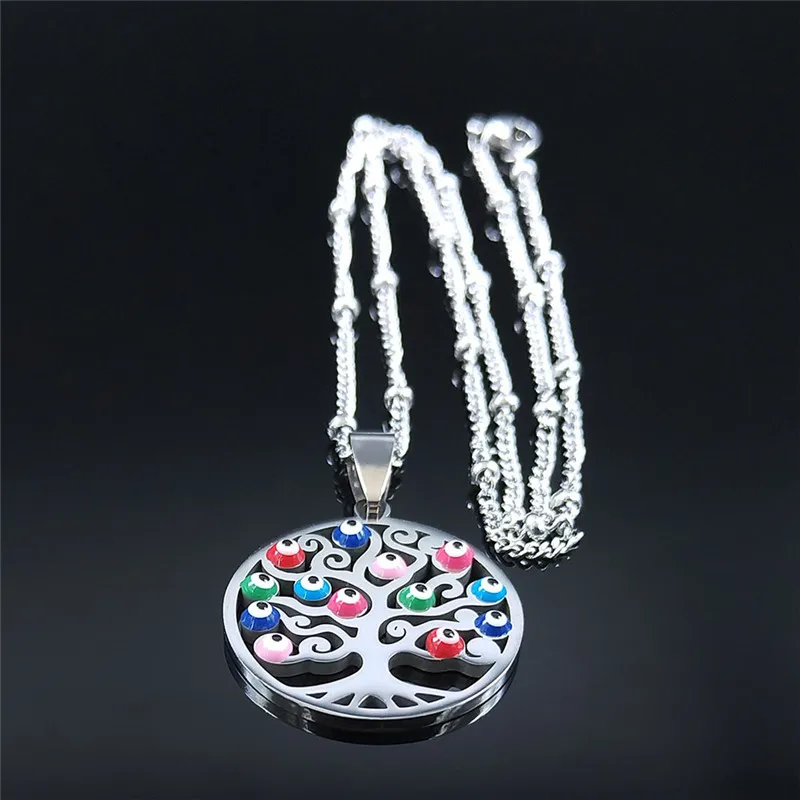 Браслет из нержавеющей стали с изображением деревьев жизни, ислама, Луны, звезд, цветная яркая цепочка для глаз индейки, цвет детской модели N5218S01
