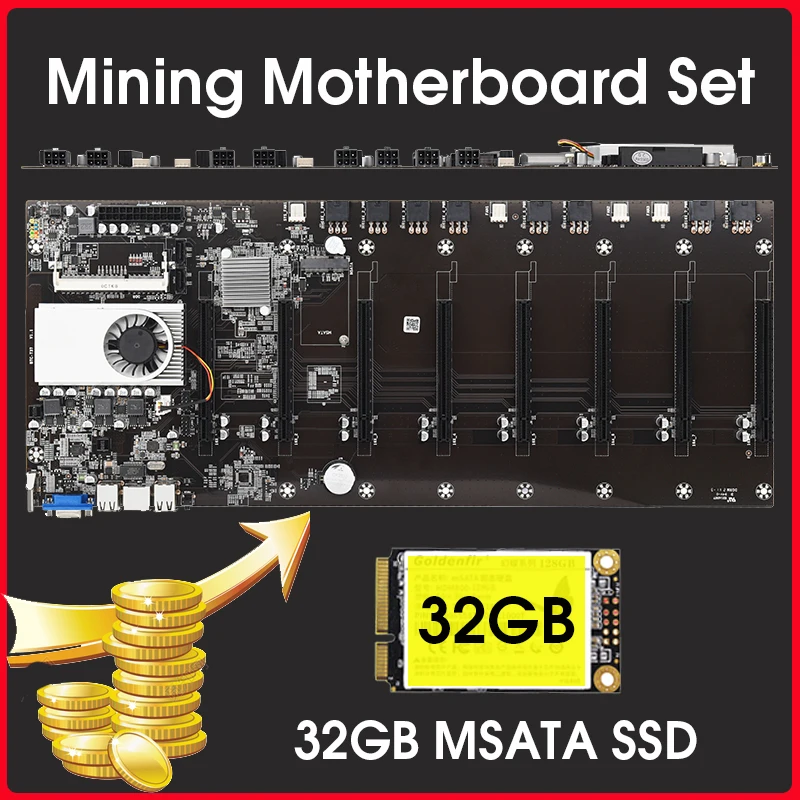 Семейная майнинговая материнская плата CPU Set 8 встроенный разъем для видеокарты VGA интерфейс низкое энергопотребление с 32 Гб MSATA SSD * 1