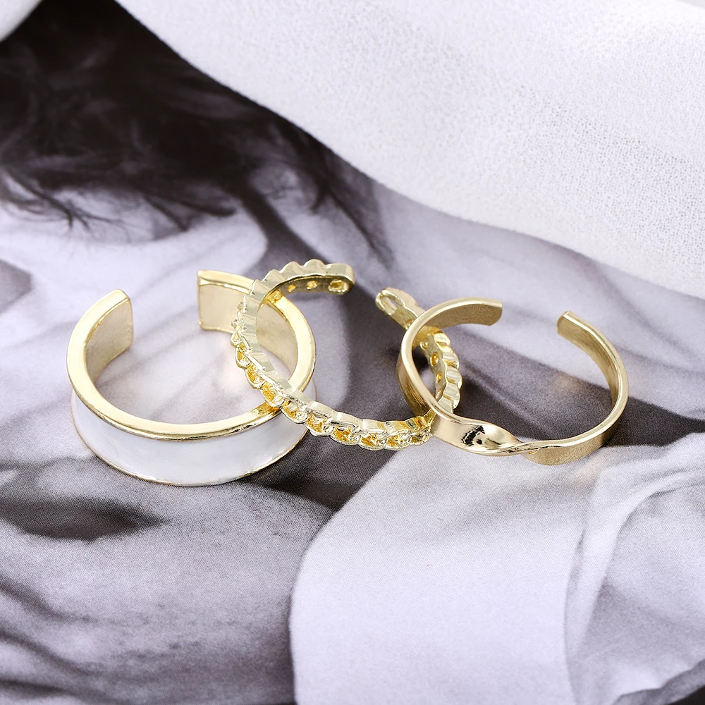 3 шт панк золотые кольца женский стек простой браслет набор колец п...