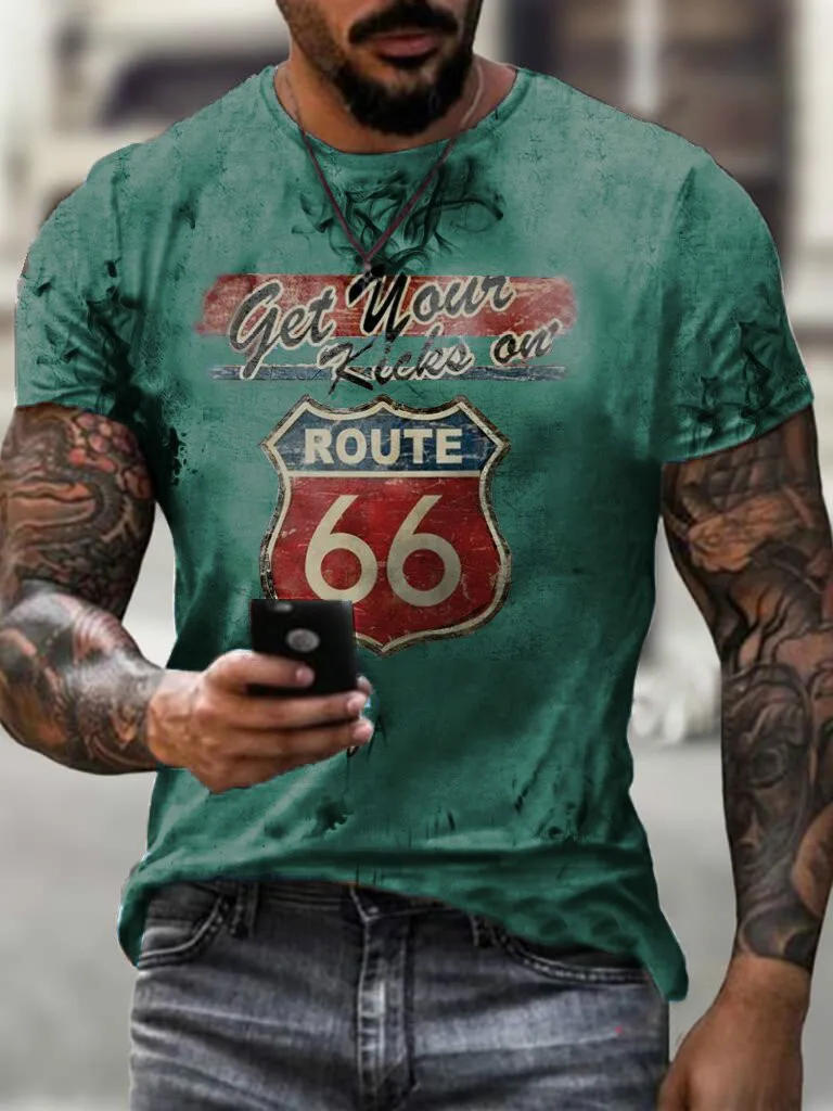 Футболка Route 66 с надписью, мужская повседневная спортивная одежда, свободная летняя футболка с коротким рукавом и