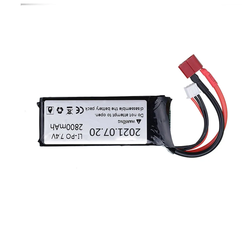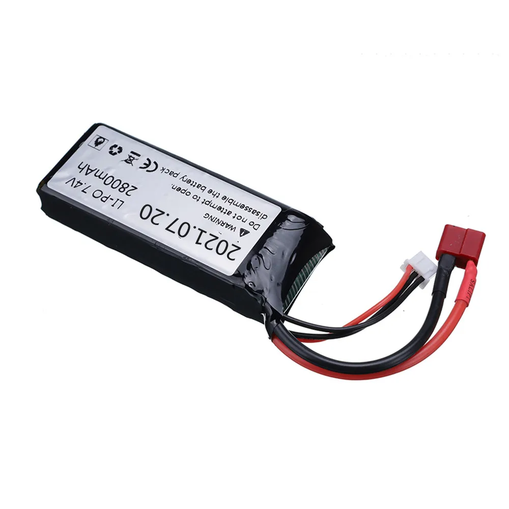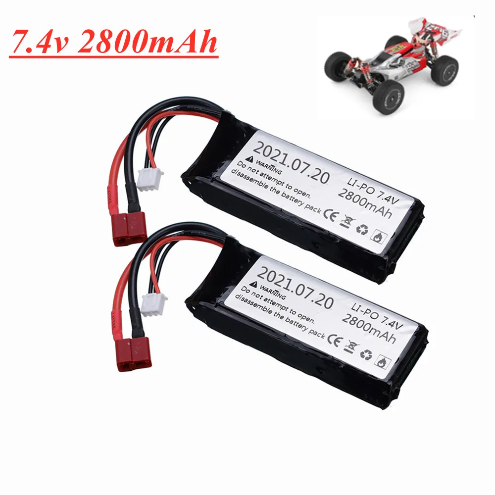 Литий-полимерный аккумулятор для Wltoys 144001, автомобиль 2s 7,4 в 2800 мАч, T-образный разъем для Wltoys 114 144001 124019 12428, запчасти для радиоуправляемого автомобиля, лодки, литий-полимерного аккумулятора