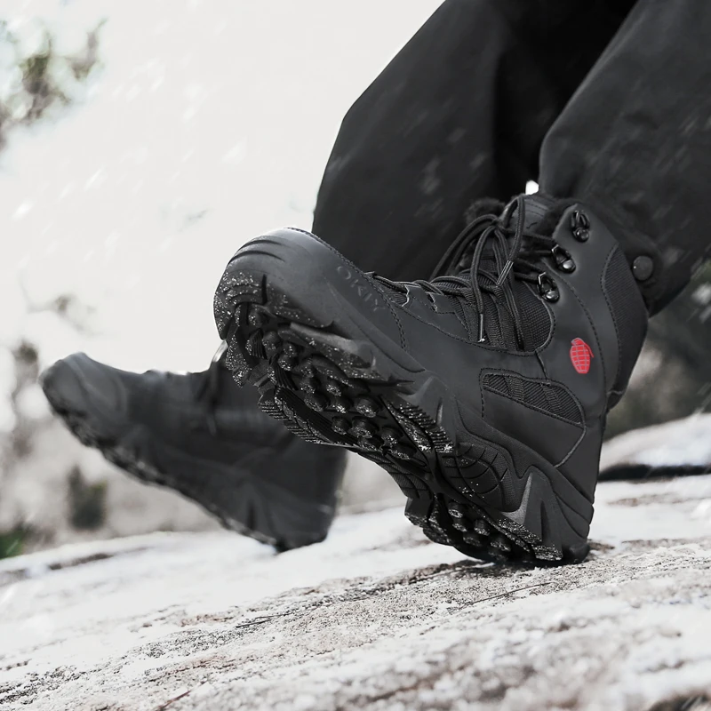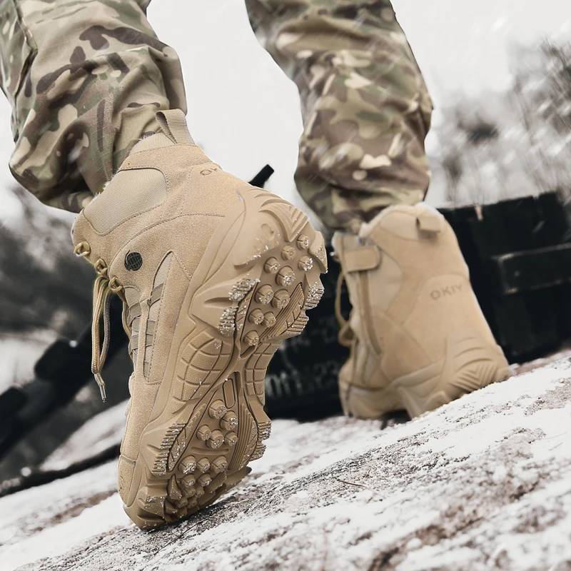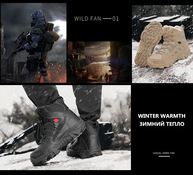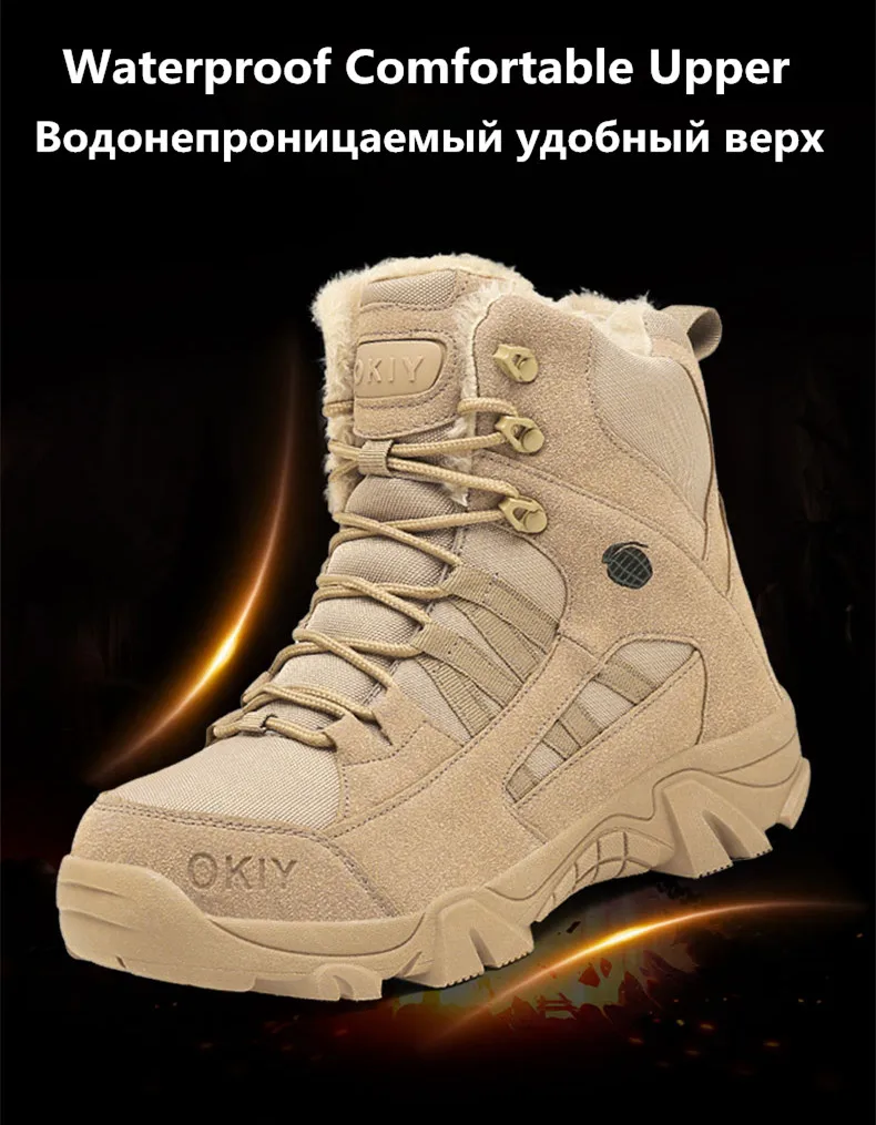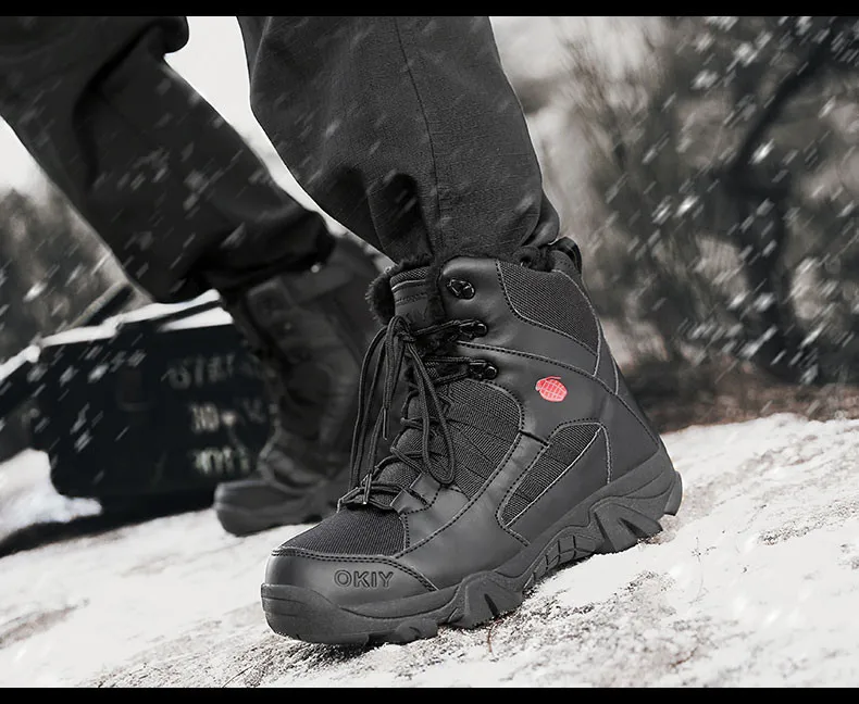 Зимние мужские ботинки, плюшевые теплые зимние ботинки, Нескользящие рабочие ботинки, уличные водонепроницаемые мужские военные ботинки, модные мотоциклетные ботинки