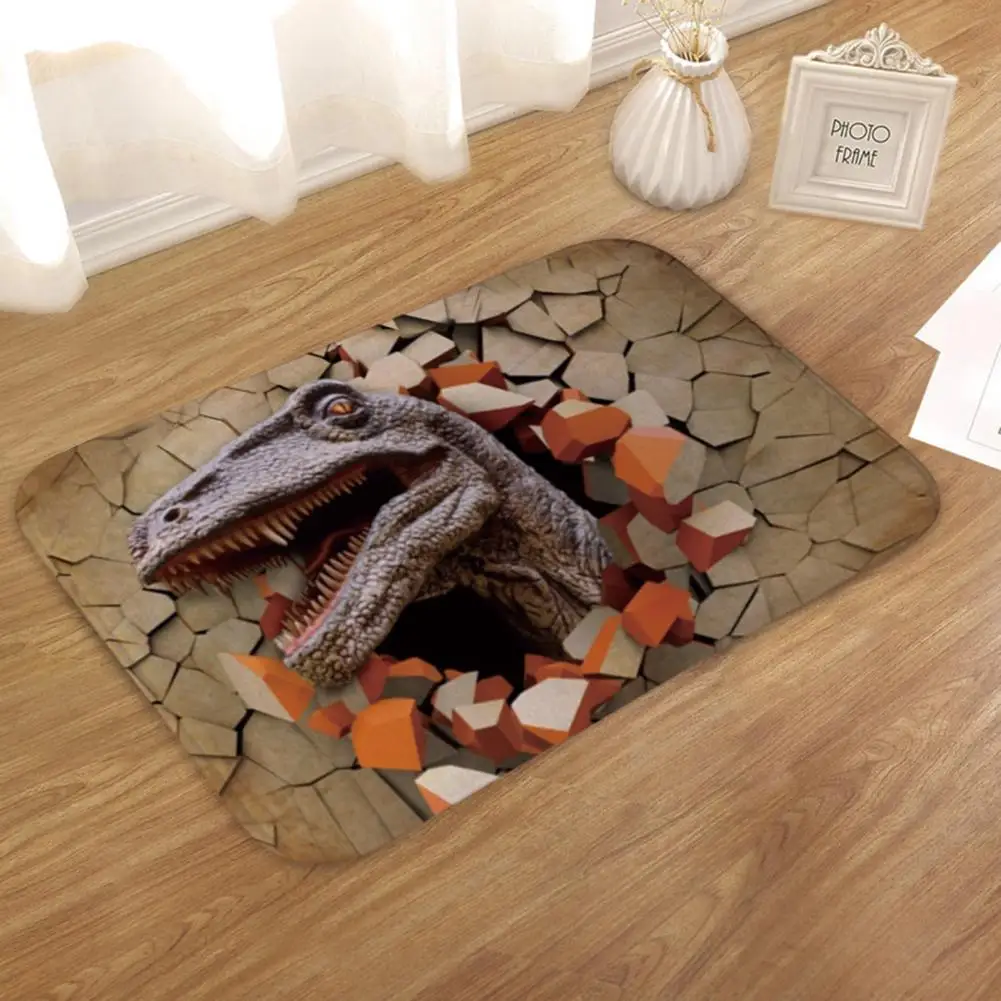 Дверной коврик, декоративный дышащий фланелевый нескользящий 3D напольный коврик с рисунком динозавра, интересный мультяшный коврик для дома
