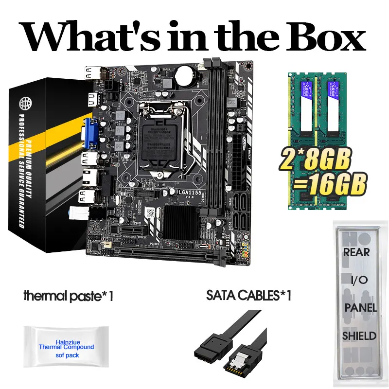Комплект материнской платы LGA 1155 для Intel Core i7 i5 i3 pentium celeron LGA1155 M-ATX Intel с 2*8 ГБ = 16 ГБ DDR3 1600 МГц ОЗУ для ПК