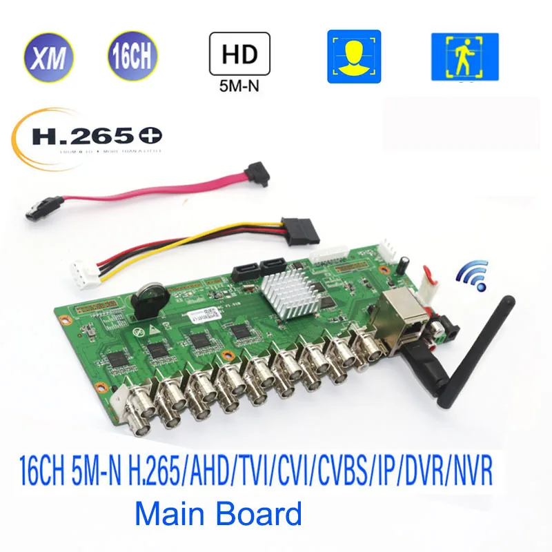 функция Wi-Fi видеонаблюдение видеорегистратор 16 каналов Видеорегистратор 6 в 1, NVR 16CH 5M-N 1080P H.265 + DVR, NVR-плата, AHD, TVI, CVI, XVI, CVBS, IP-режим для аналоговой AHD, IP-камеры регистратор для камер
