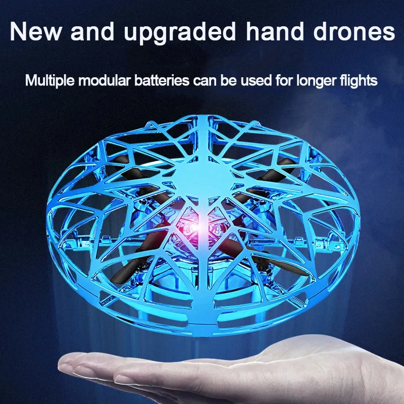 Мини НЛО светодиодный Дрон Квадрокоптер Игрушки Летающий на кончик пальца гироскоп дистанционное управление вертолеты ручной Дрон детские игрушки для мальчиков в подарок