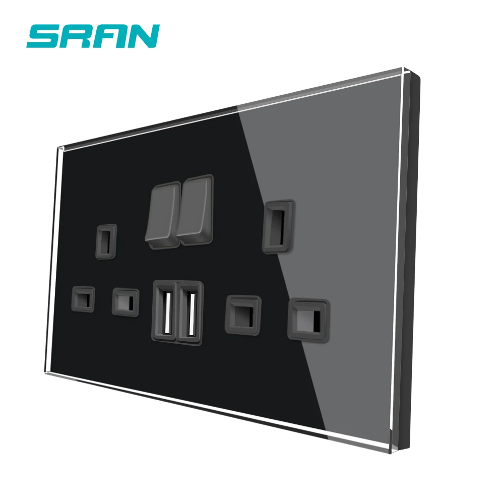 Настенная розетка SRAN с интернетом, кристальная панель из закаленн...