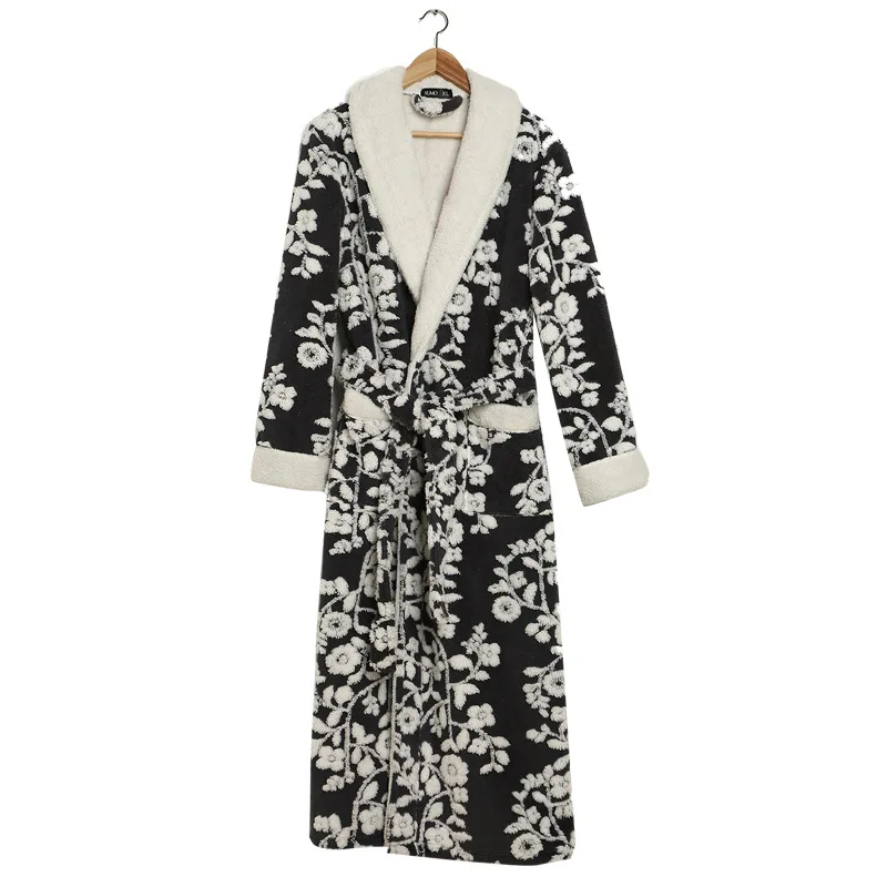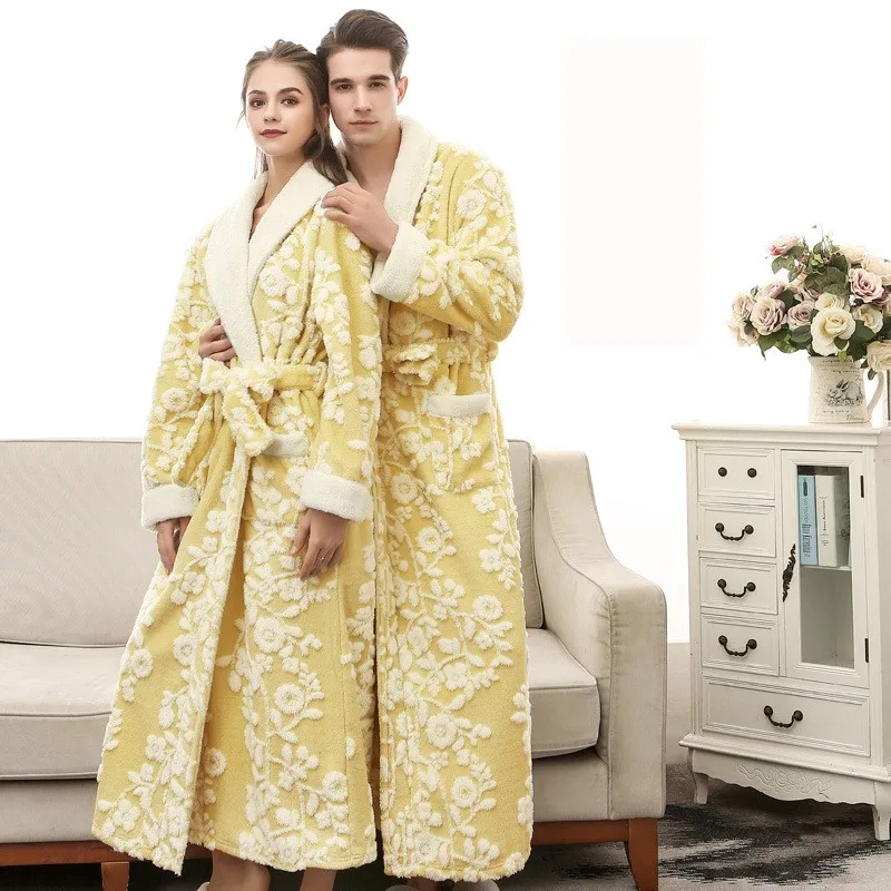 Халат чудесный - мягкий,очень теплый,красивый и что мужу очень нравится - длинный.Он в нем похож на Деда-Мороза. : ))