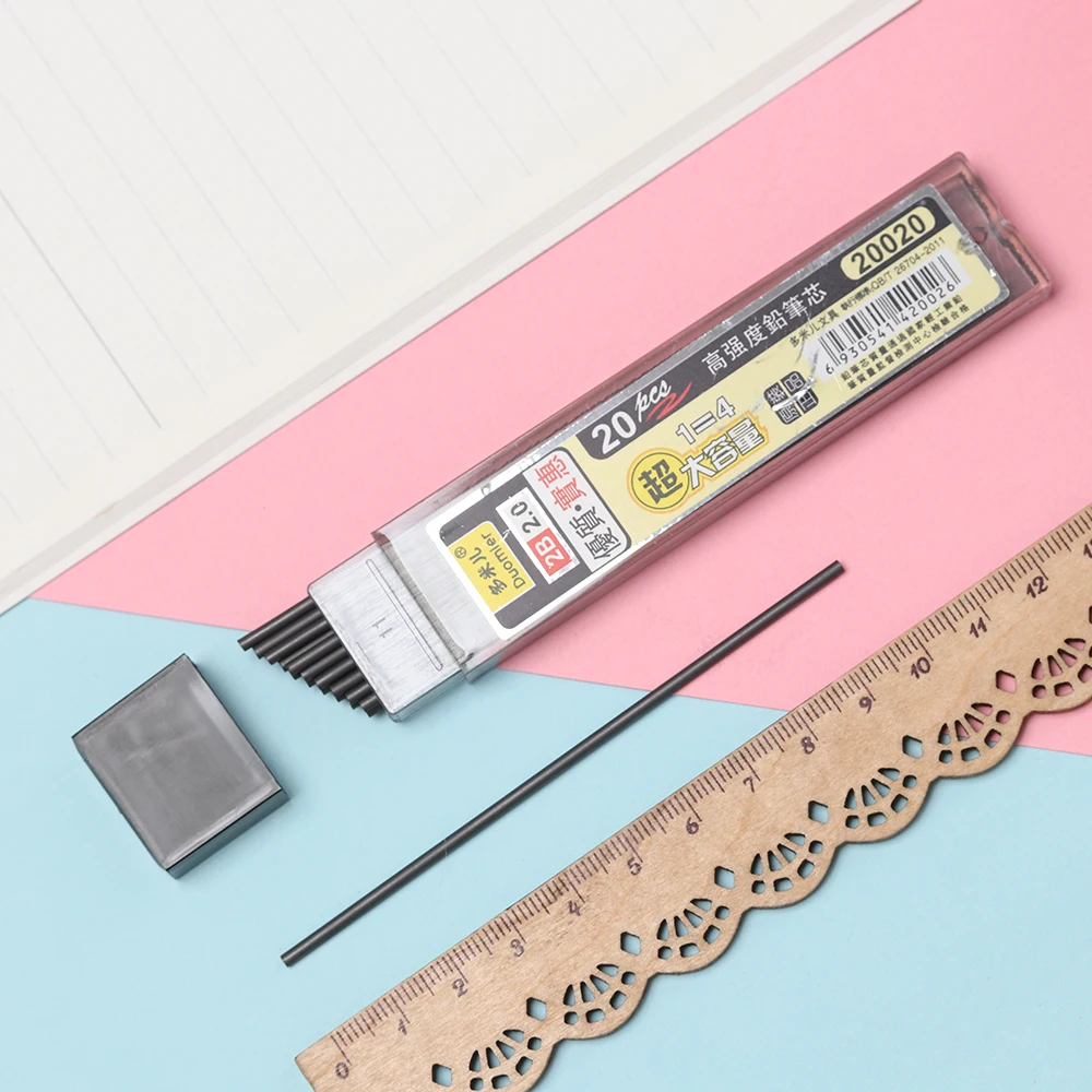 20 шт./кор. 2,0 мм 2B толстый сердечник графитовый стержень автоматический карандаш сменный сердечник механический карандаш сменный стержень школьный офисный стержень