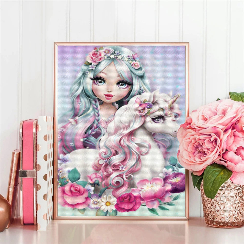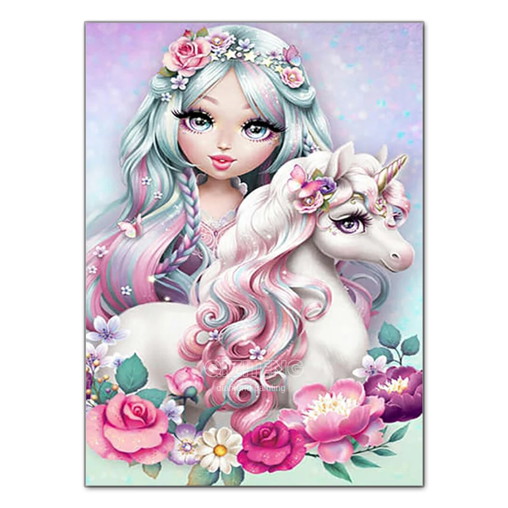 Алмазная 5D картина сделай сам, мультяшная девушка, заполненная алмазами, Волшебный Единорог стразы, мозаика ручной работы, украшение для детской комнаты и дома
