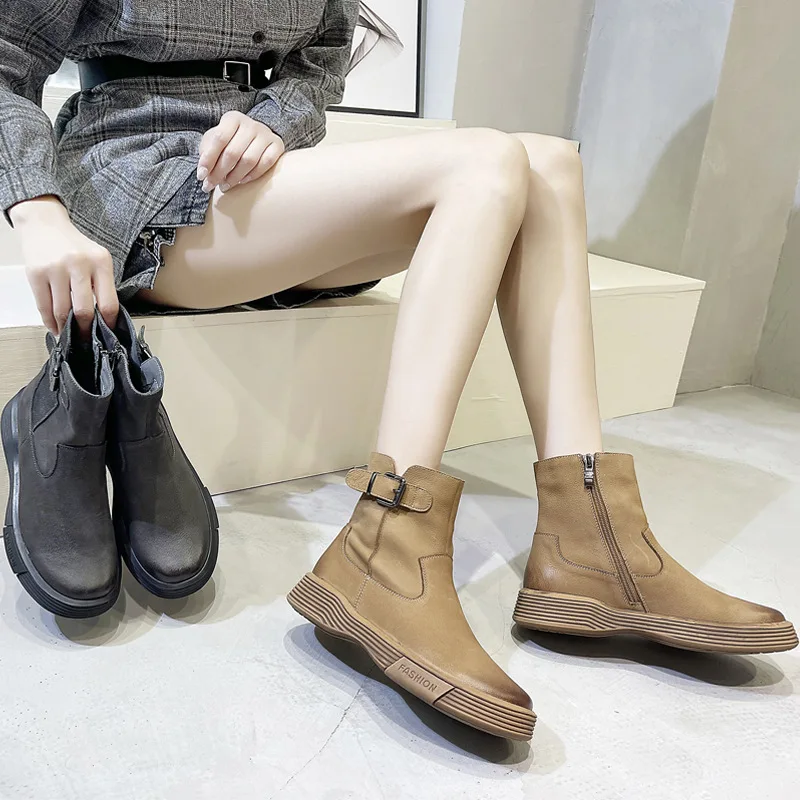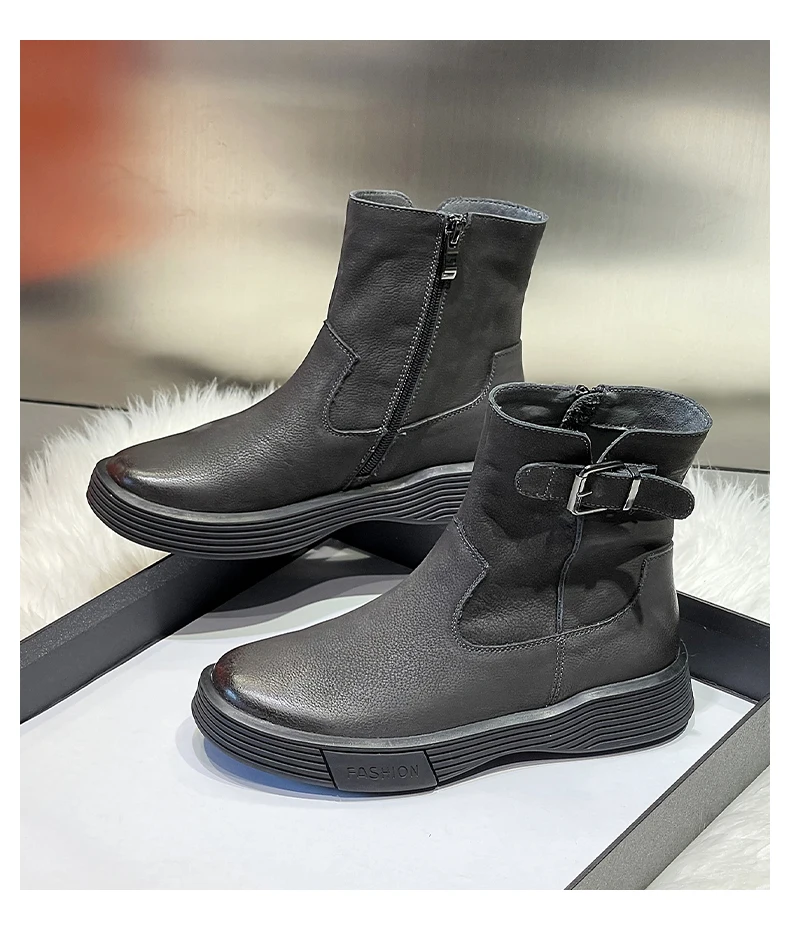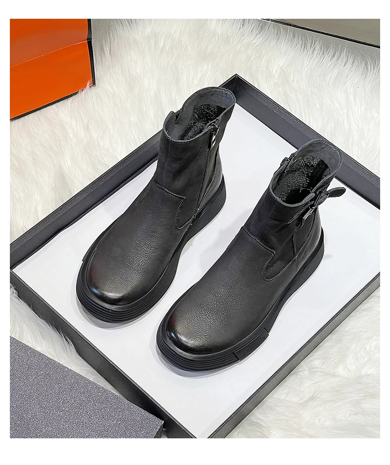 Осенние ботильоны из коровьей кожи, женские короткие ботинки на платформе, модная повседневная обувь с пряжкой и высоким верхом, женские ботинки