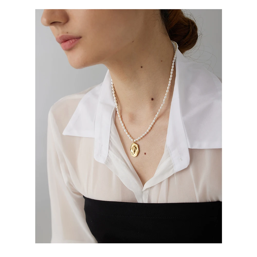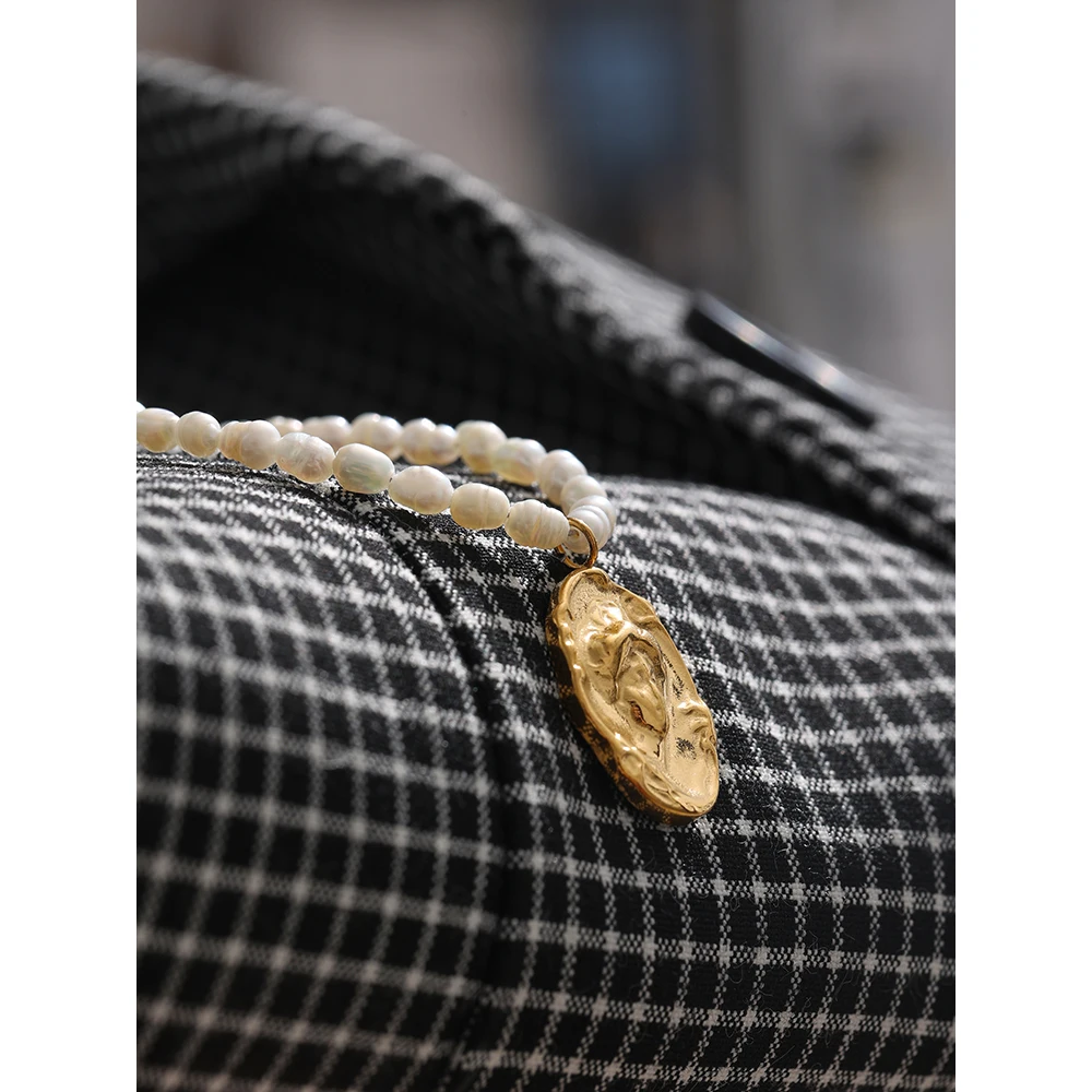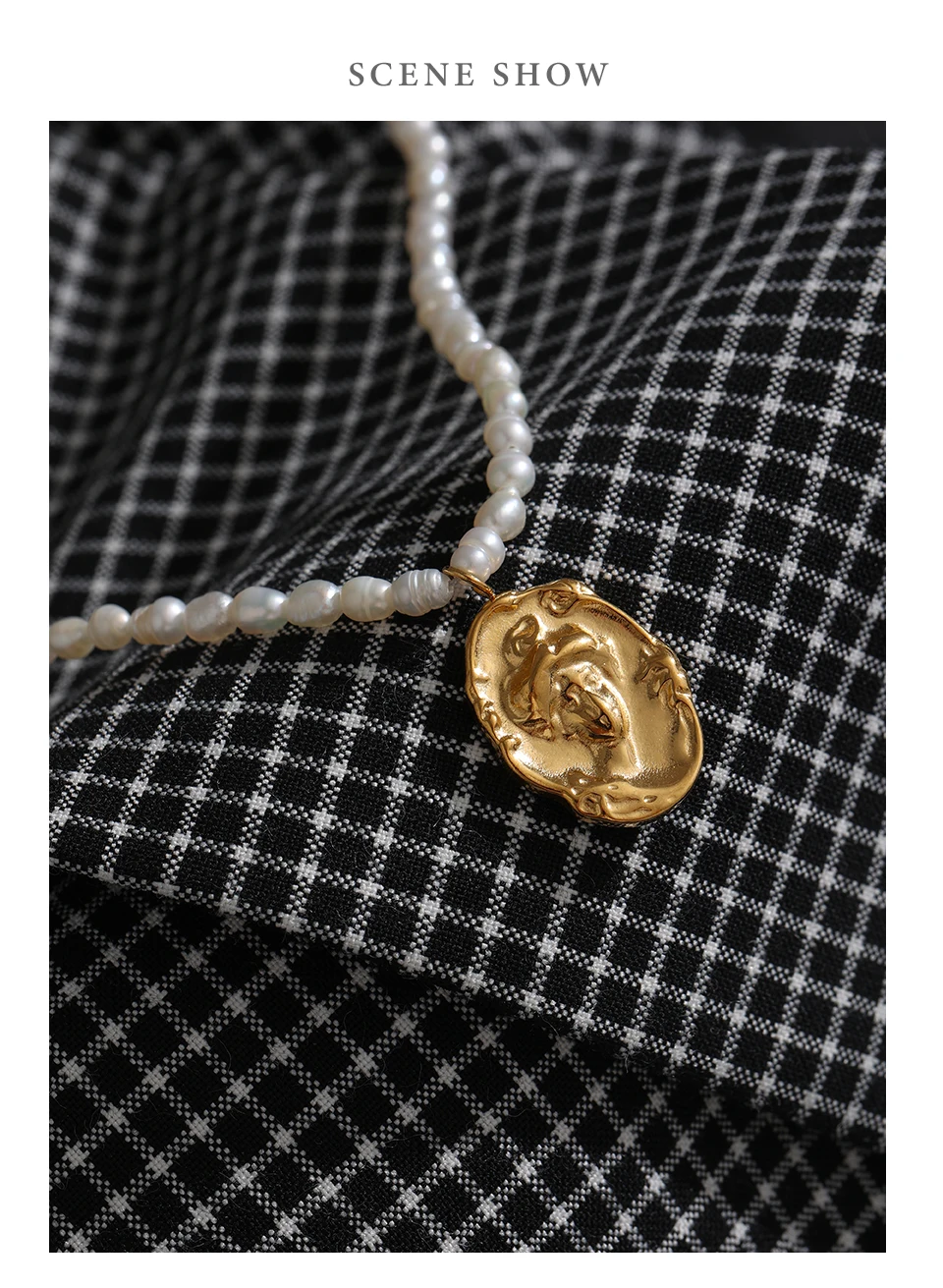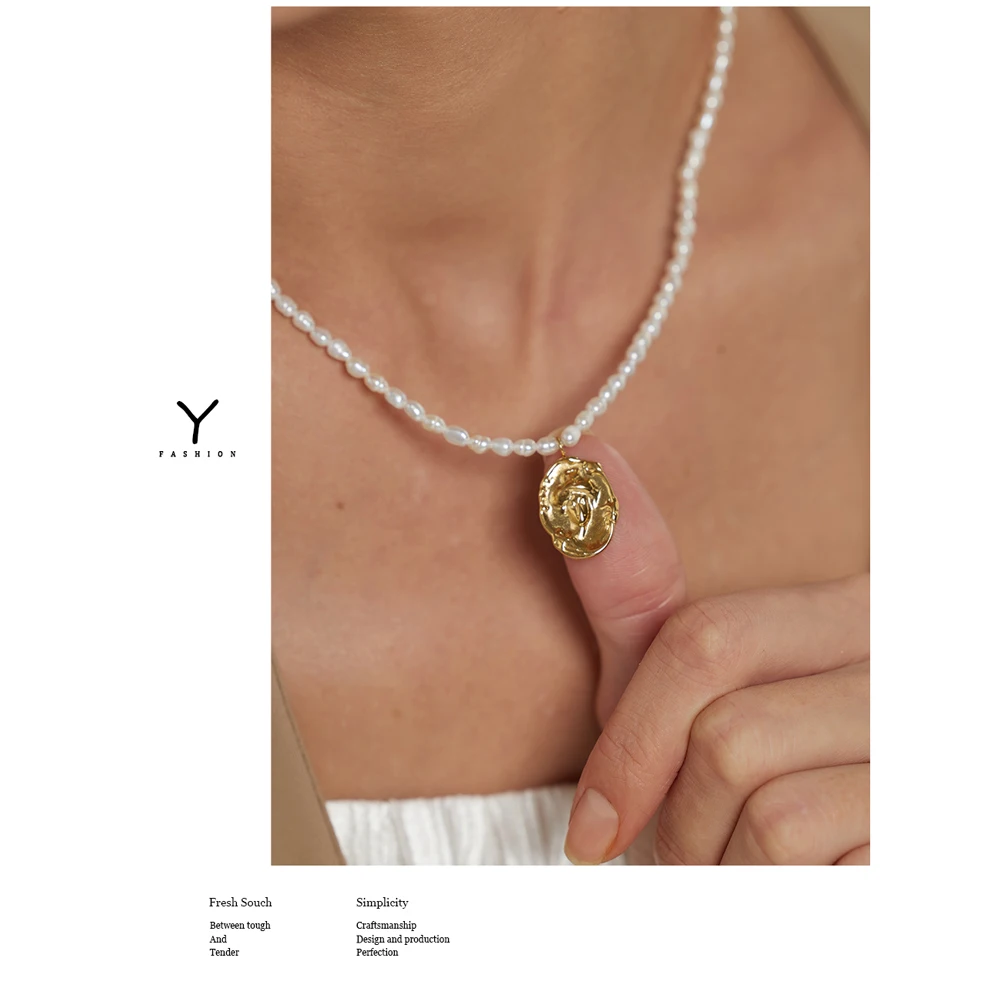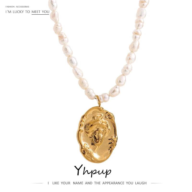 Ювелирные изделия из нержавеющей стали Yhpup 2021, цепочка из натурального жемчуга, золотистый кулон с портретом, ожерелье, вечерние