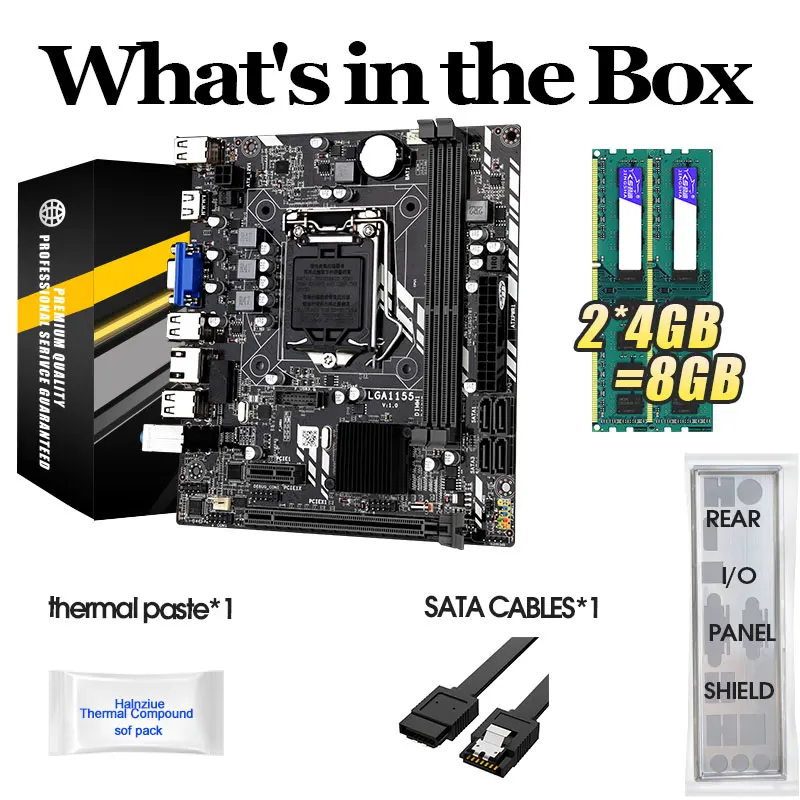 Комплект материнской платы LGA 1155 для Intel Core i7 i5 i3 pentium celeron H61M стандартная Intel с 2*4 Гб = 8 ГБ DDR3 1600 МГц ОЗУ для ПК