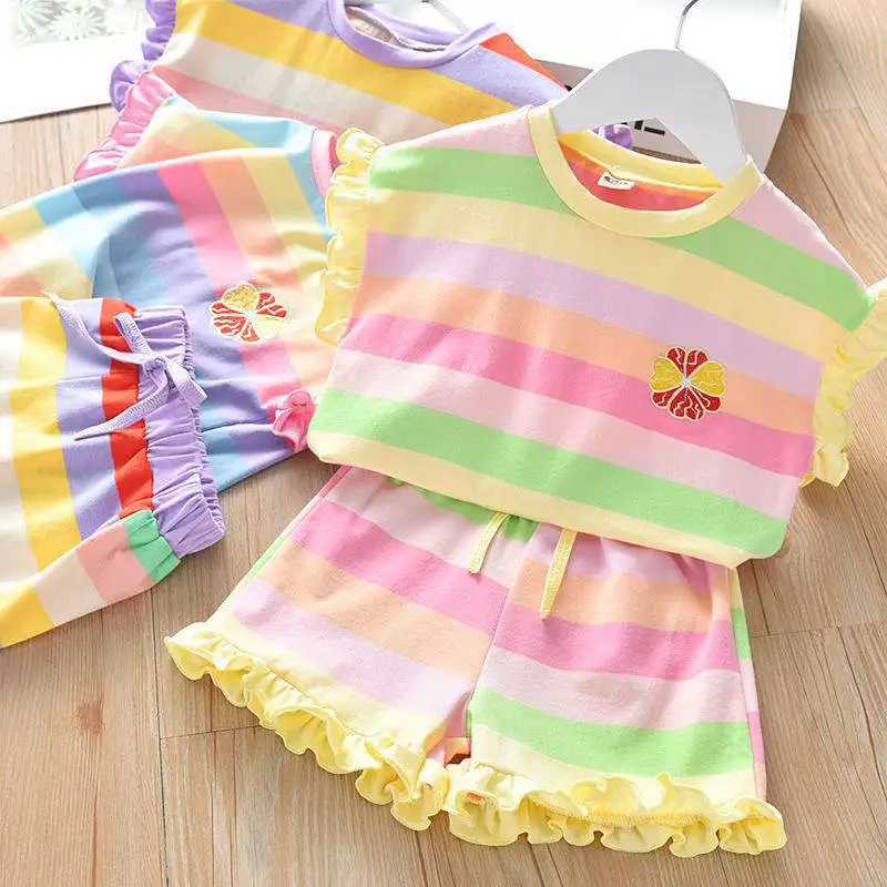 Детские спортивные костюмы для девочек из 2 предметов, Летние повседневные радужные комплекты одежды, Осенние футболки, брюки, спортивные костюмы, весенний комплект одежды для девочек