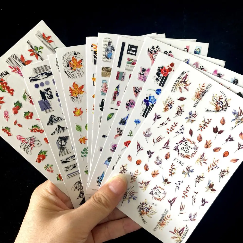 Наклейки для ногтей в виде кошек, авокадо, русалки, Сиба-ину, 1 лист
