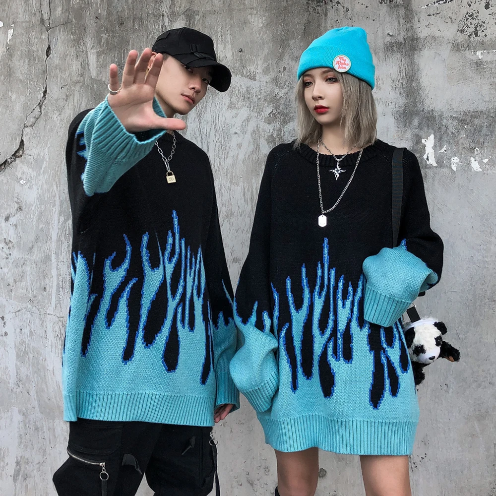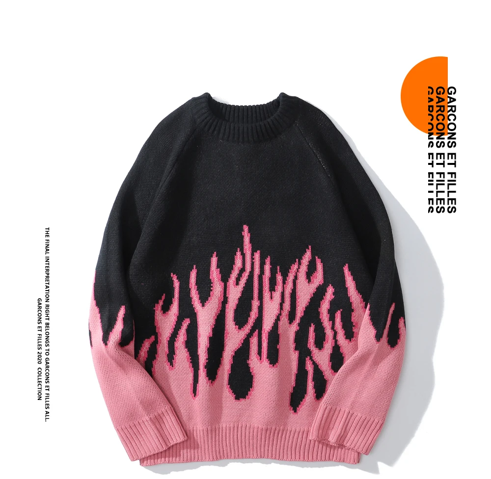 Мужской свитер в уличном стиле ретро с принтом пламени, осень 2021,...